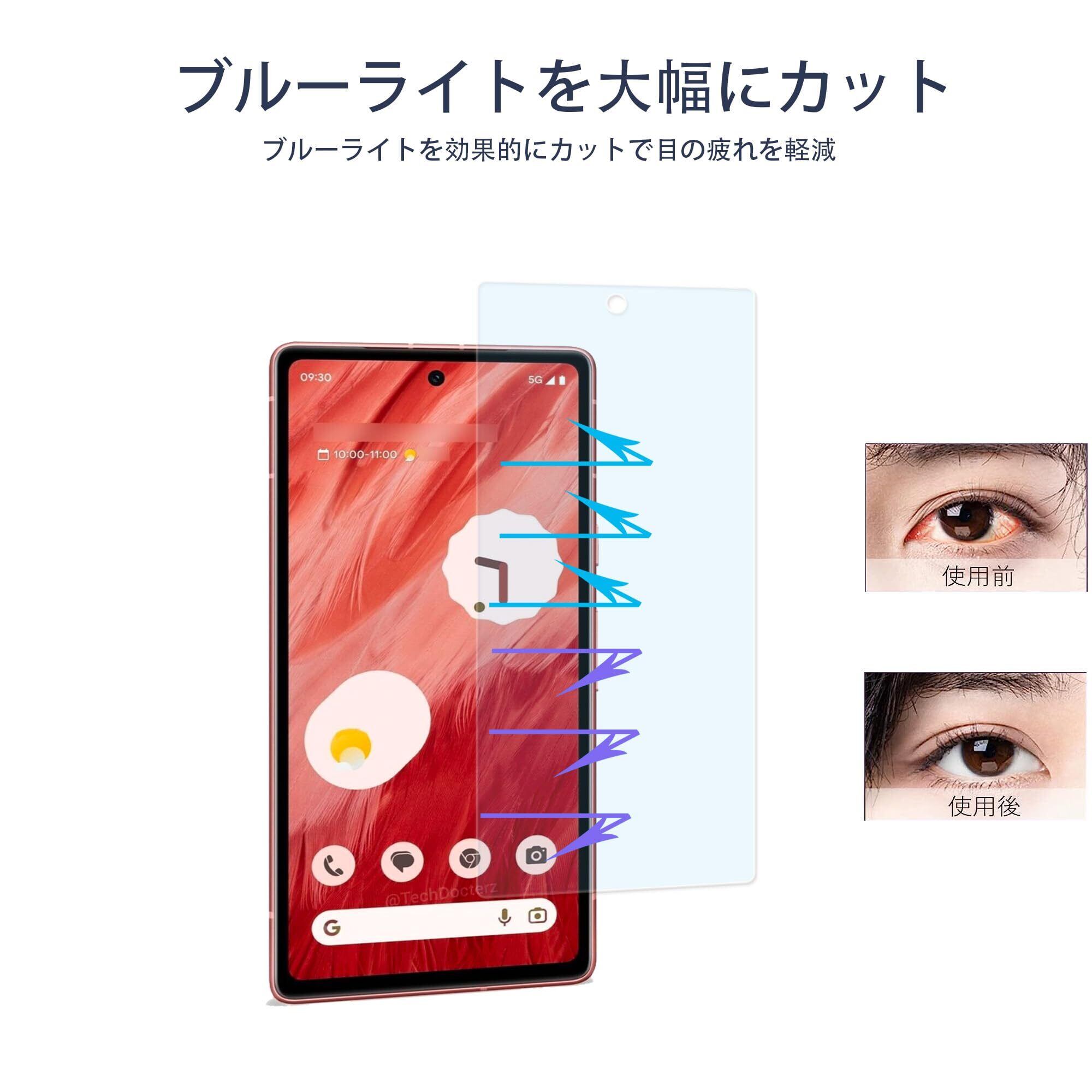 【数量限定】ブルーライトカット 目の疲れ軽減 93% Google Pixel 7a 用 ガラスフィルム 日本製硝子採用 強化 ガラス 液晶画面 保護フィルム【2枚セット】