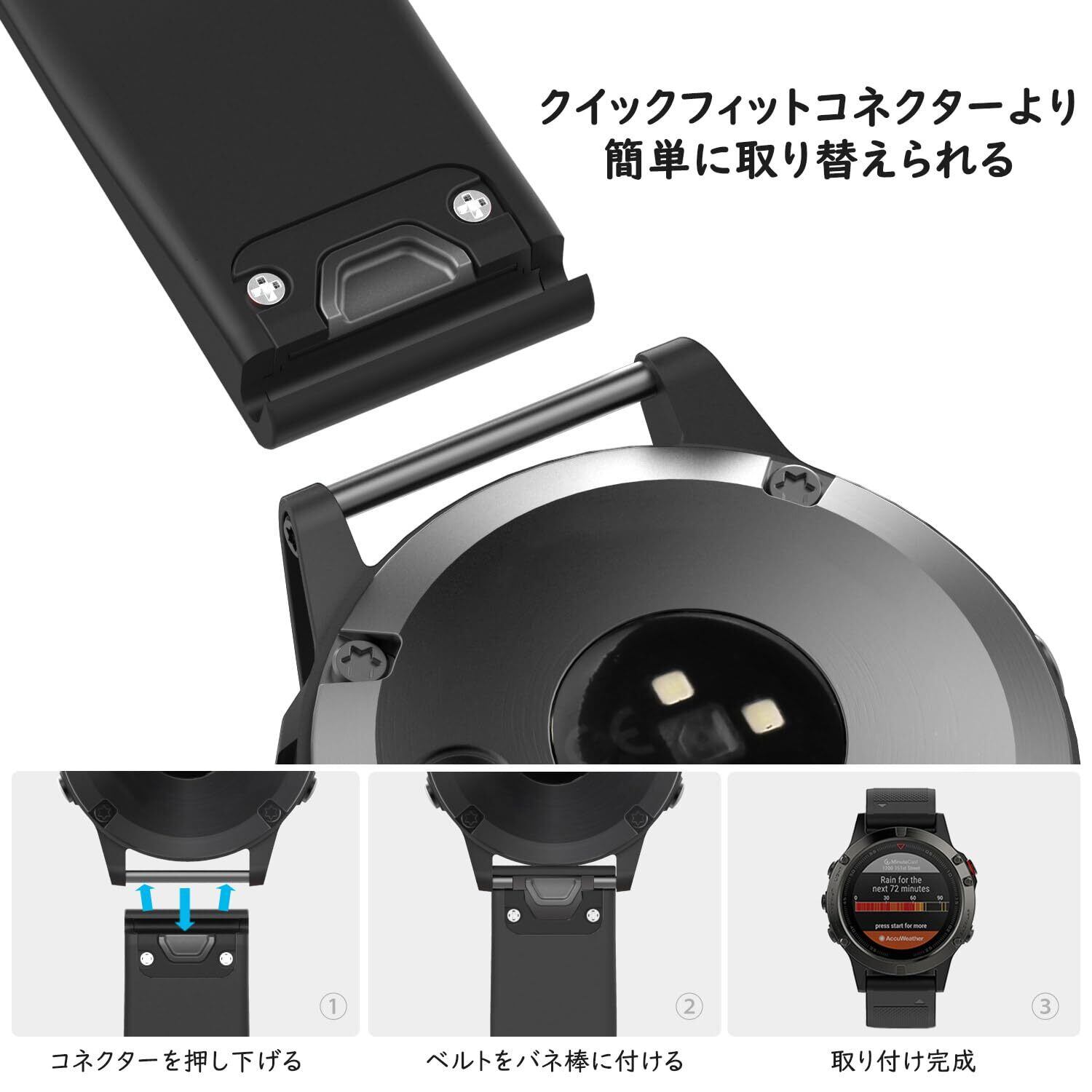 【新着商品】ATiC Fenix 8 47MM Fenix 7 バンド Fenix7/6/5/instinct/approach s62/forerunner935/945 替えベルト 柔らかい シリコン製 ステンレスバックル 通気性 スポーツバンド 装着簡単 Black