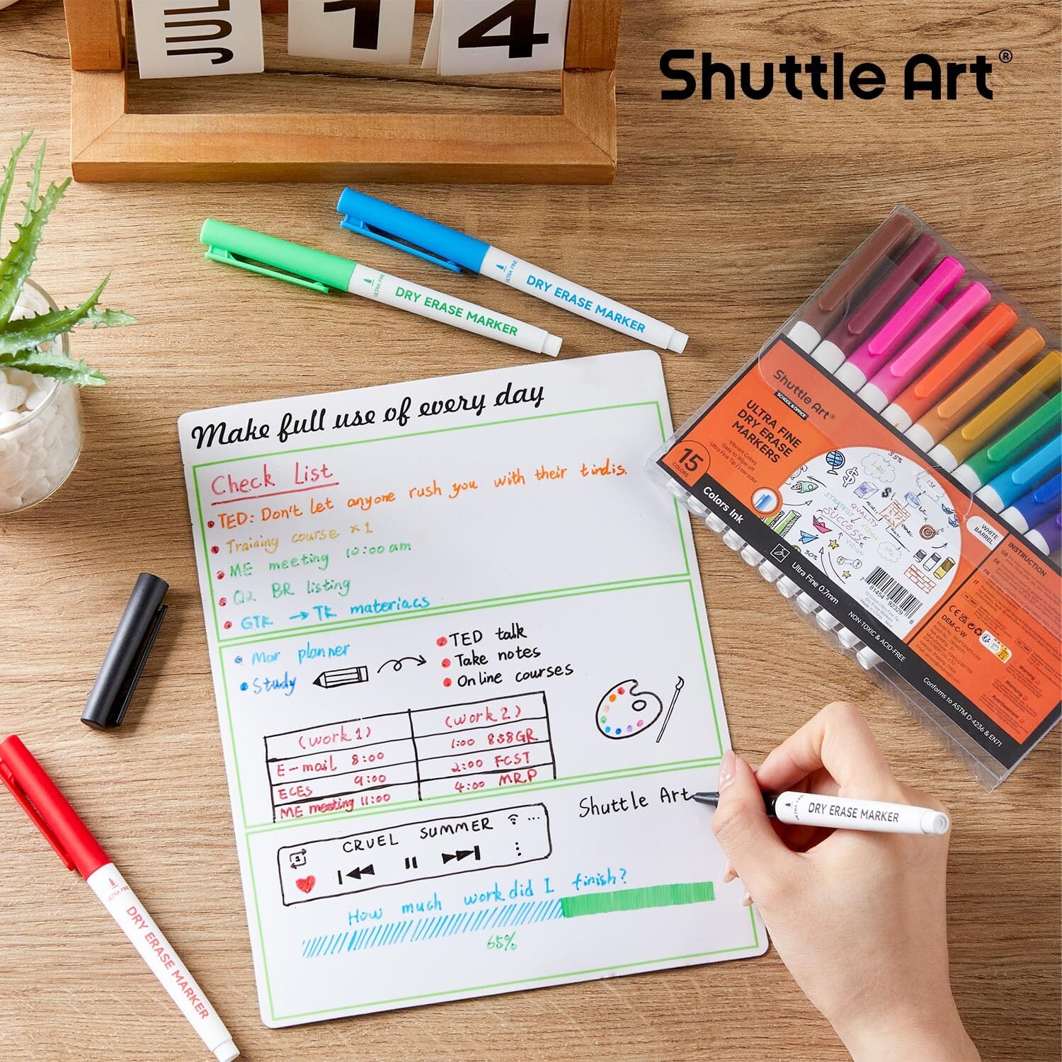 【新春セール】Shuttle Art ホワイトボードマーカー 15色セット 消せるマーカーペン 0.7mm 極細ペン 大容量 ホワイトボード用 ガラス/プラスチック/LED看板に書ける オフィス 作業現場 家庭 学校用