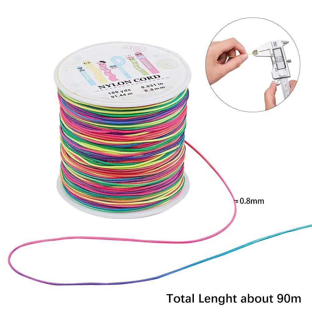 【新春セール】PandaHall 約90m/巻き 0.8mm カラーナイロンロープ マルチカラー 糸 結び紐 手芸 工芸 カラー ナイロンコード 手編み ブレスレット ハンドメイド 中国結び用 DIY 手作り 材料
