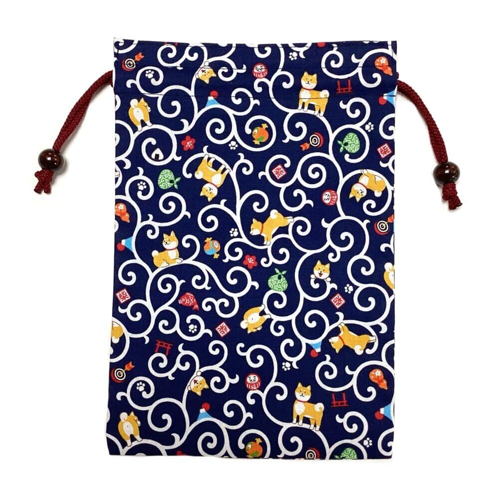 【新春セール】京佑 日本製 御朱印帳 ケース 巾着 袋 約26.5×18cm 縁起屋柴犬 紺