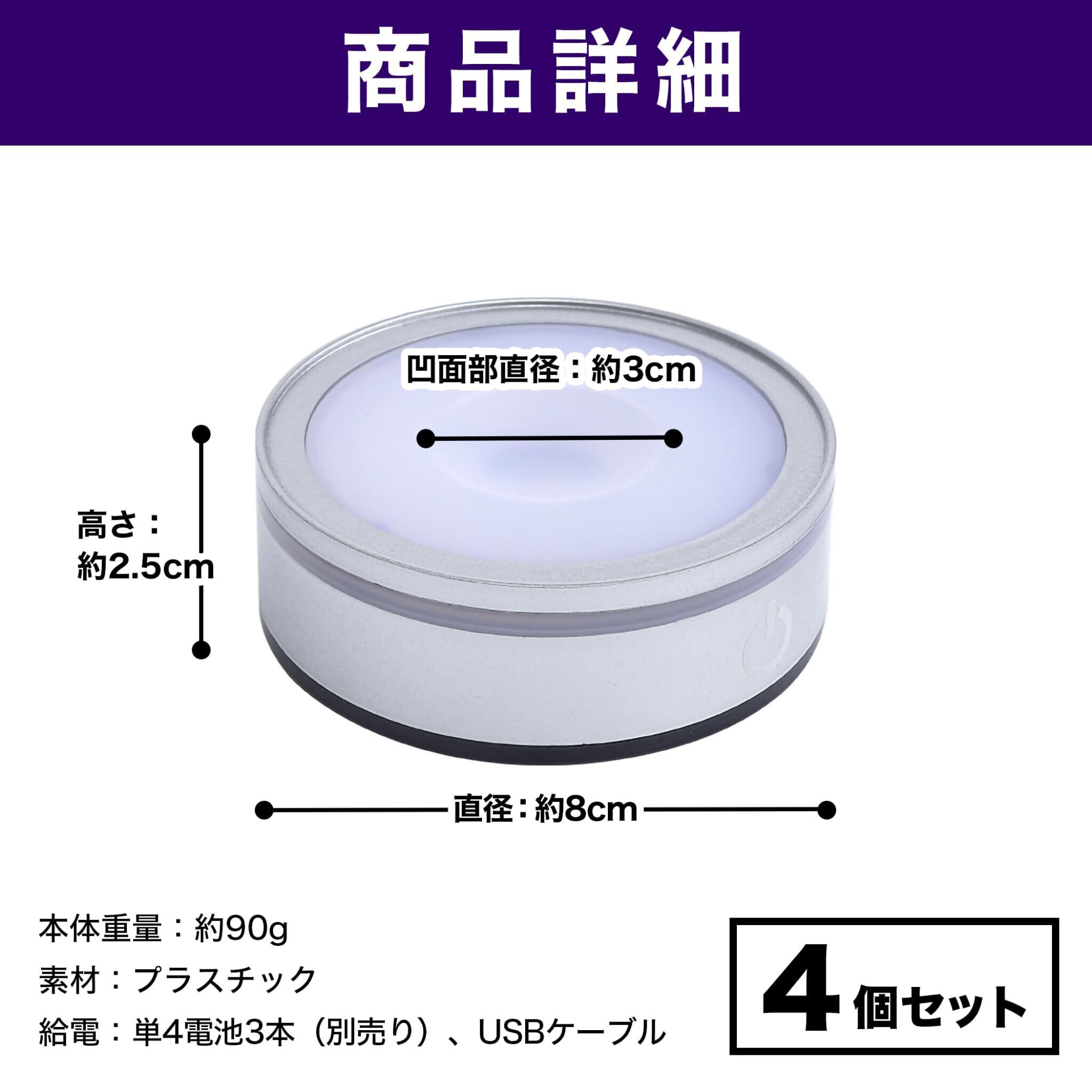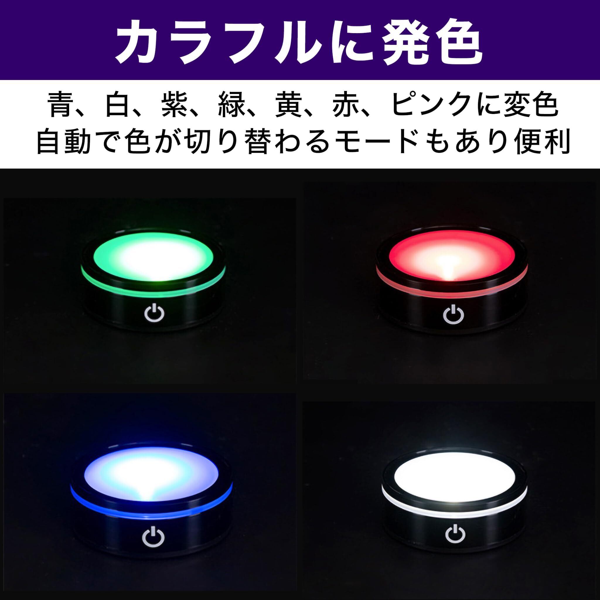 【人気商品】光る台座 7色 照明 ディスプレイ 置物 クリスタル ハーバリウム (シルバー4個セット) | KURASHILABO