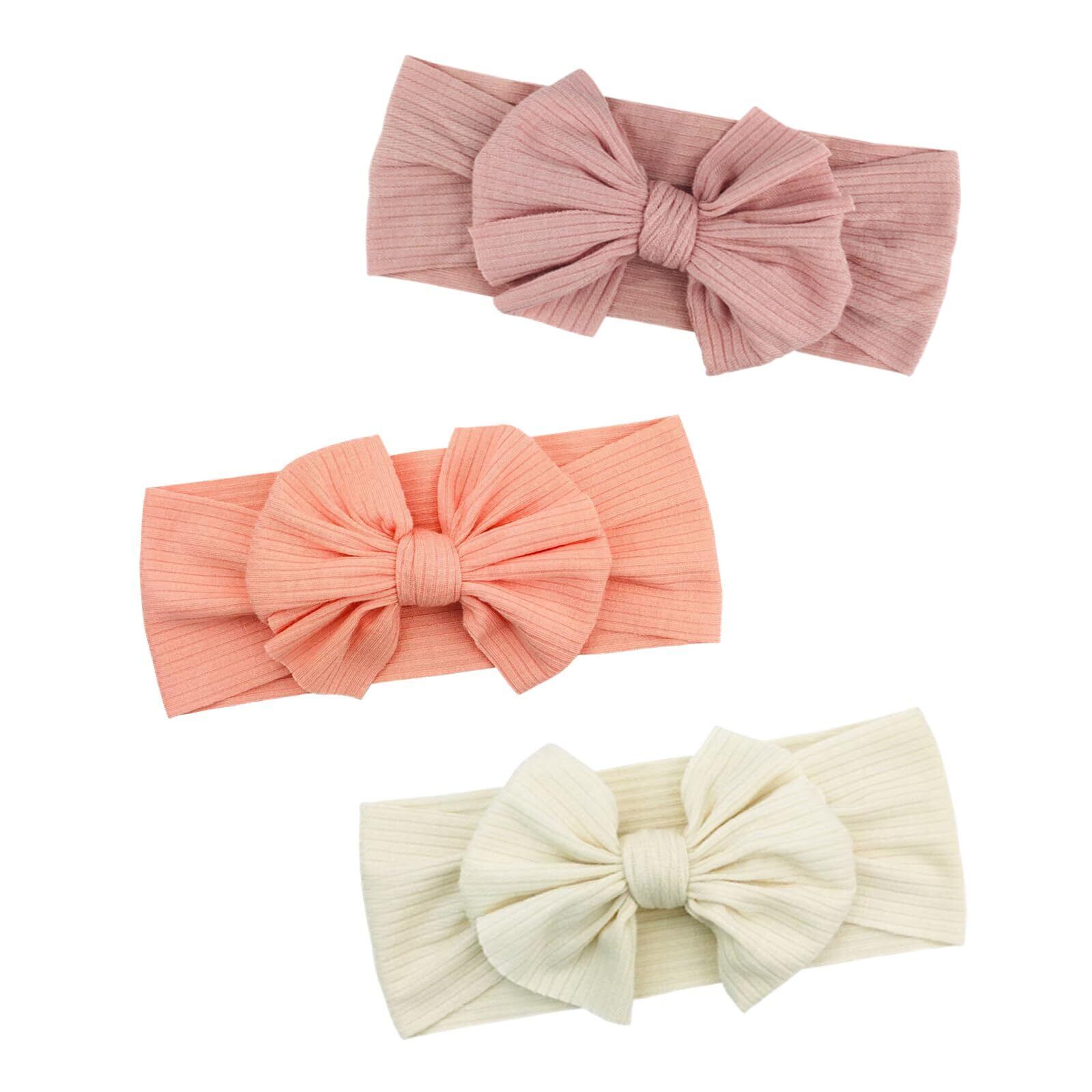 【人気商品】DFsucces ヘアバンド ベビー ゴ 髪飾り リボン 蝶結びや かわいい ヘアバンドセット 3点 出産祝い 誕生日 プレゼント 結婚式 お祝い 撮影記念 (ダークピンク+ピンク+ベージュ) | KURASHILABO