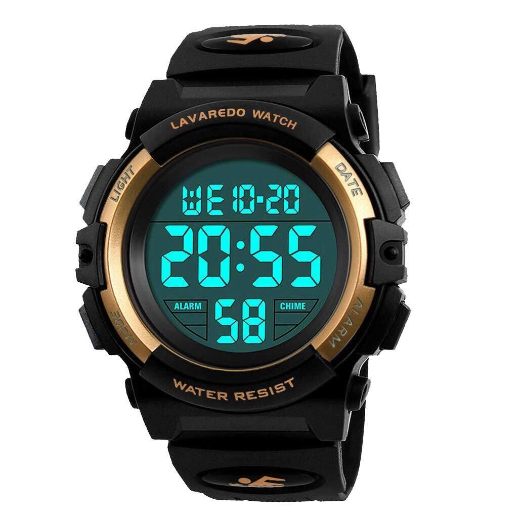 【数量限定】子供腕時計 男の子 デジタル ボーイズスポーツウォッチ アウトドア多機能50m防水 アラート 日付曜日表示 デュアルタイム LED アナログ表示(ゴールド)