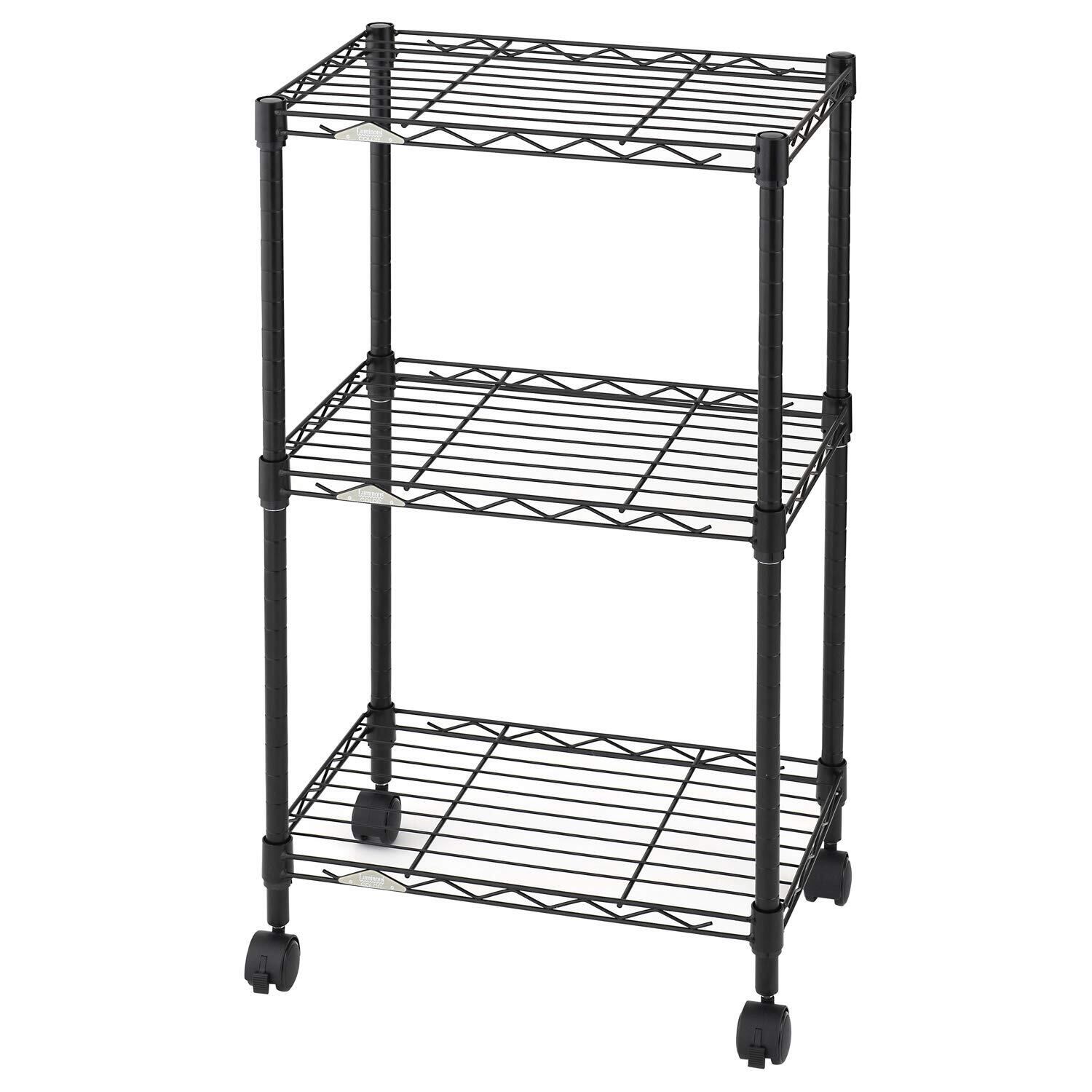 【2022最新】ドウシシャ ルミナス カラーラック 黒 ブラック 3段 幅45 スリム オシャレでかわいい スチールラック 棚 収納 全体耐荷重90kg キャスター付き ポール径19mm 幅45.5×奥行29.5×高さ76 キッチン ランドリー 押し入れ LCR45-3BK | KURASHILABO