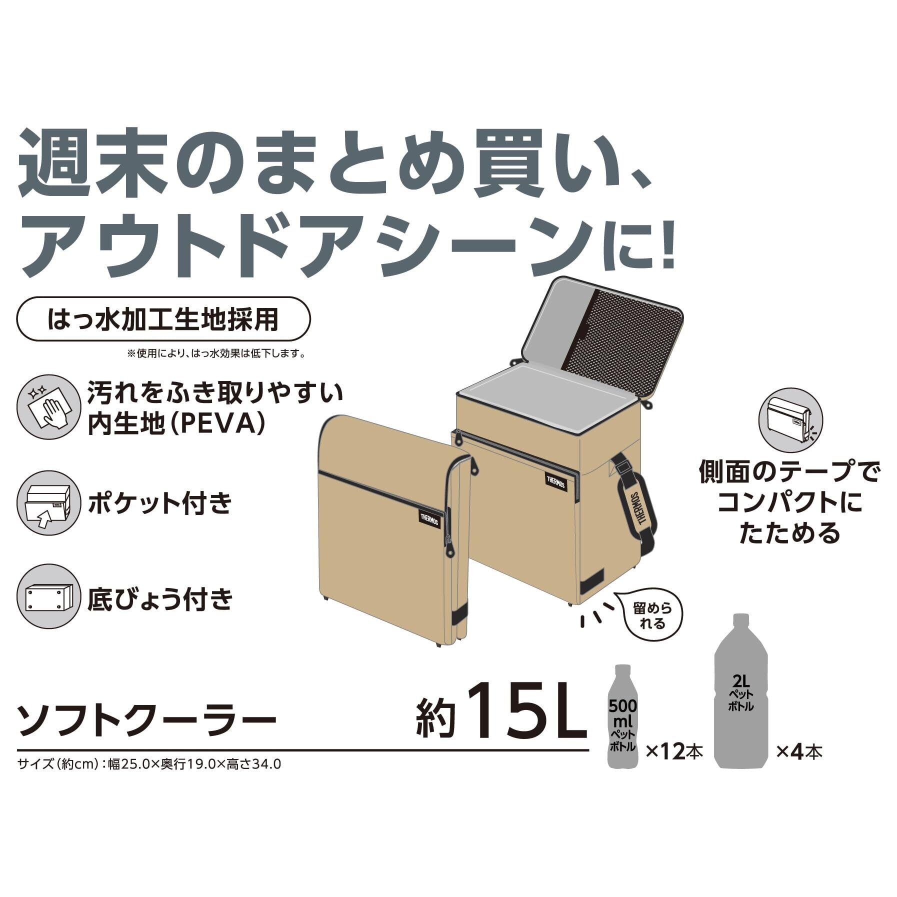 【在庫処分】サーモス ソフトクーラー 15L サンドベージュ 保冷バッグ 5層断熱構造 折りたためてコンパクト はっ水加工生地 ボックス型 大容量モデル RFD-0151 SDBE | KURASHILABO