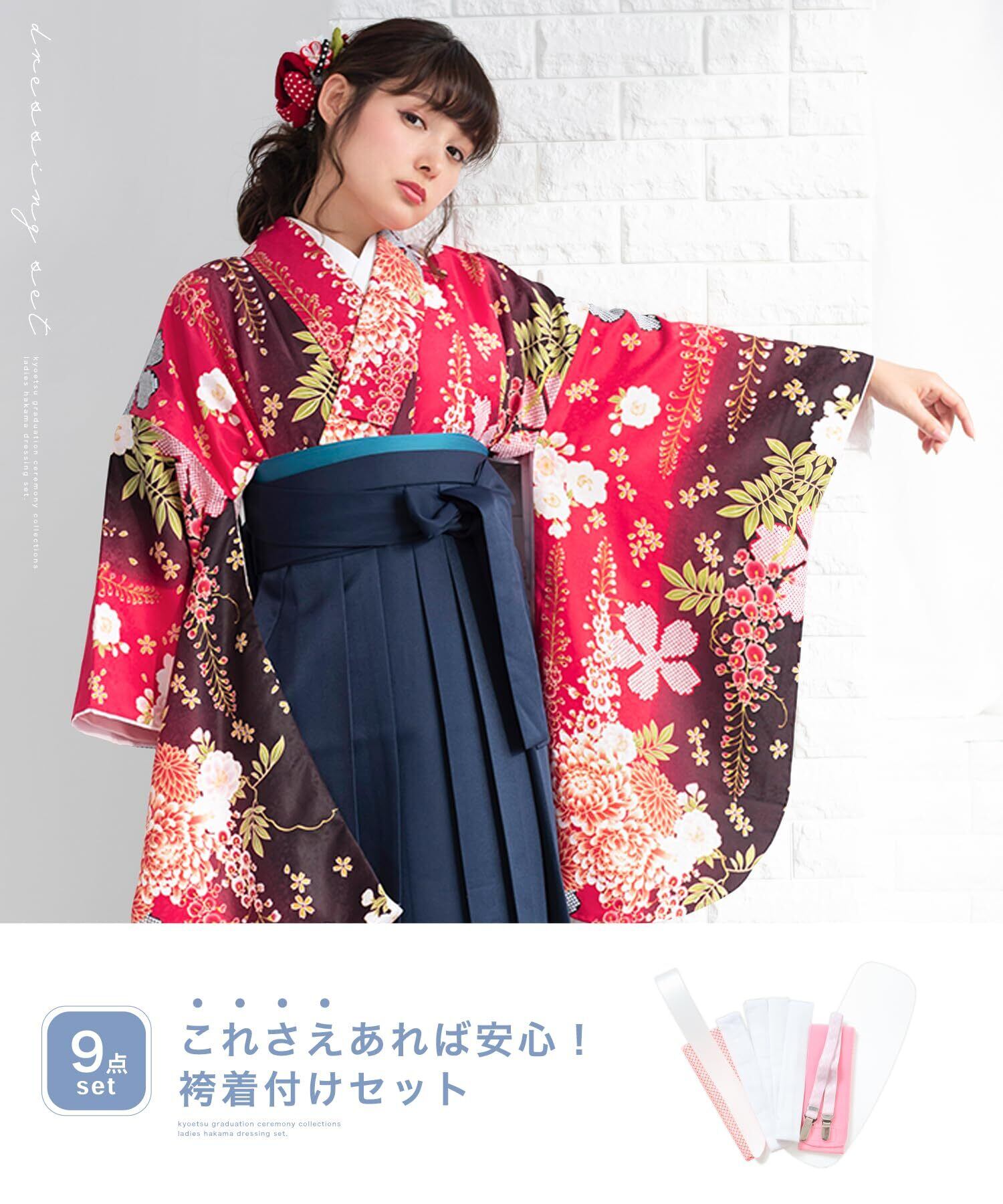 【人気商品】[KYOETSU] [キョウエツ] 着付けセット 二尺袖着物用 袴用 和装小物9点セット(伊達締め、腰紐4本、着付けベルト、前板、衿芯、マジックベルト) レディース
