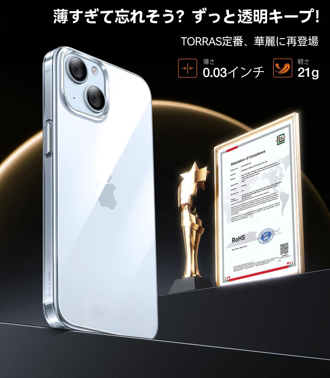【新着商品】TORRAS iPhone 15 用 ケース 【超薄型・極軽量】 薄型 軽量 シンプル 日本製PC 耐衝撃カバー 6.1インチ あいほん15用ケース 「OriginFit 」クリア