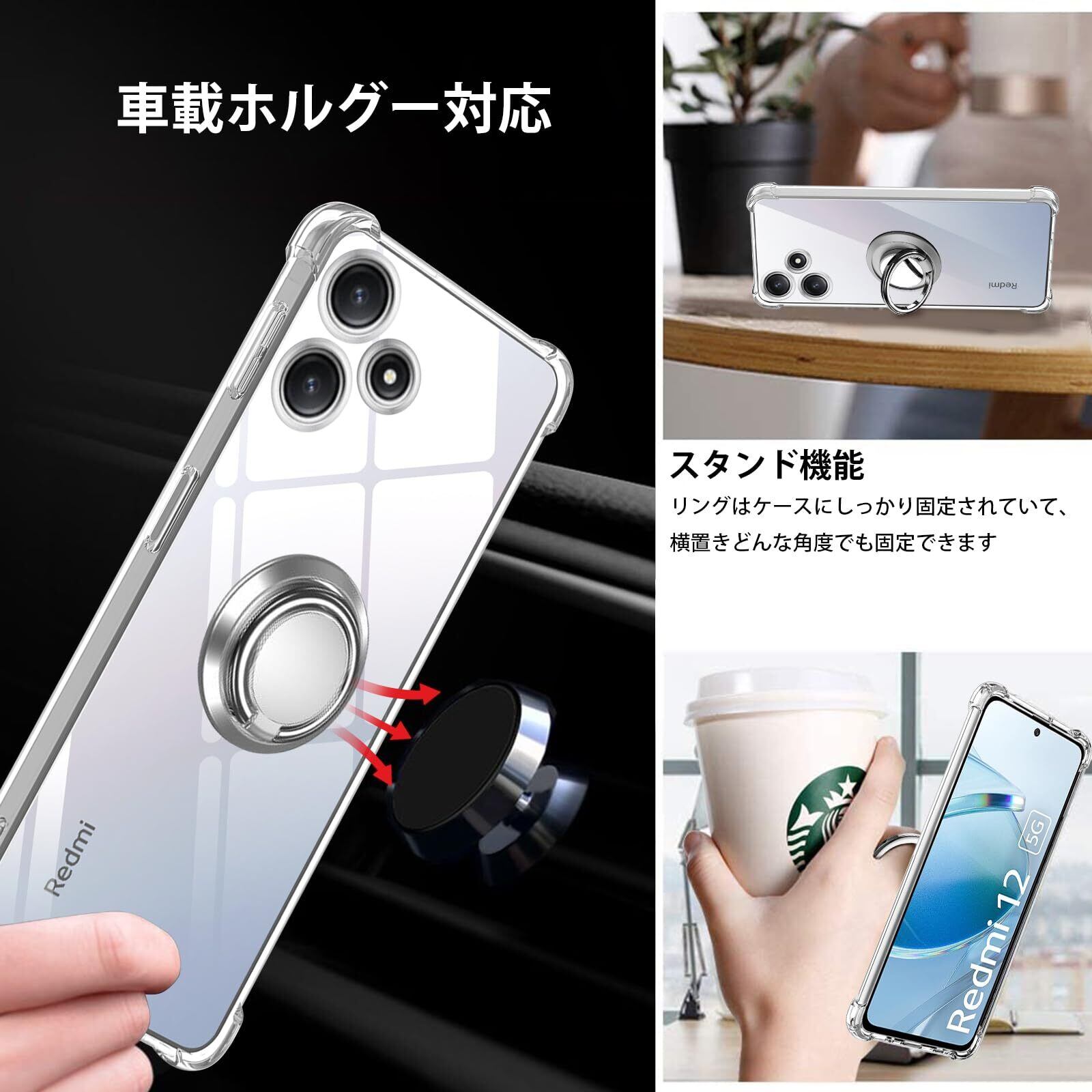【数量限定】対応 Redmi 12 5G 用 ケース リング TPU 薄型 軽量シリコン 耐衝撃 指紋防止 車載ホルダー対応 防塵 一体型 人気 携帯カバー(クリア)