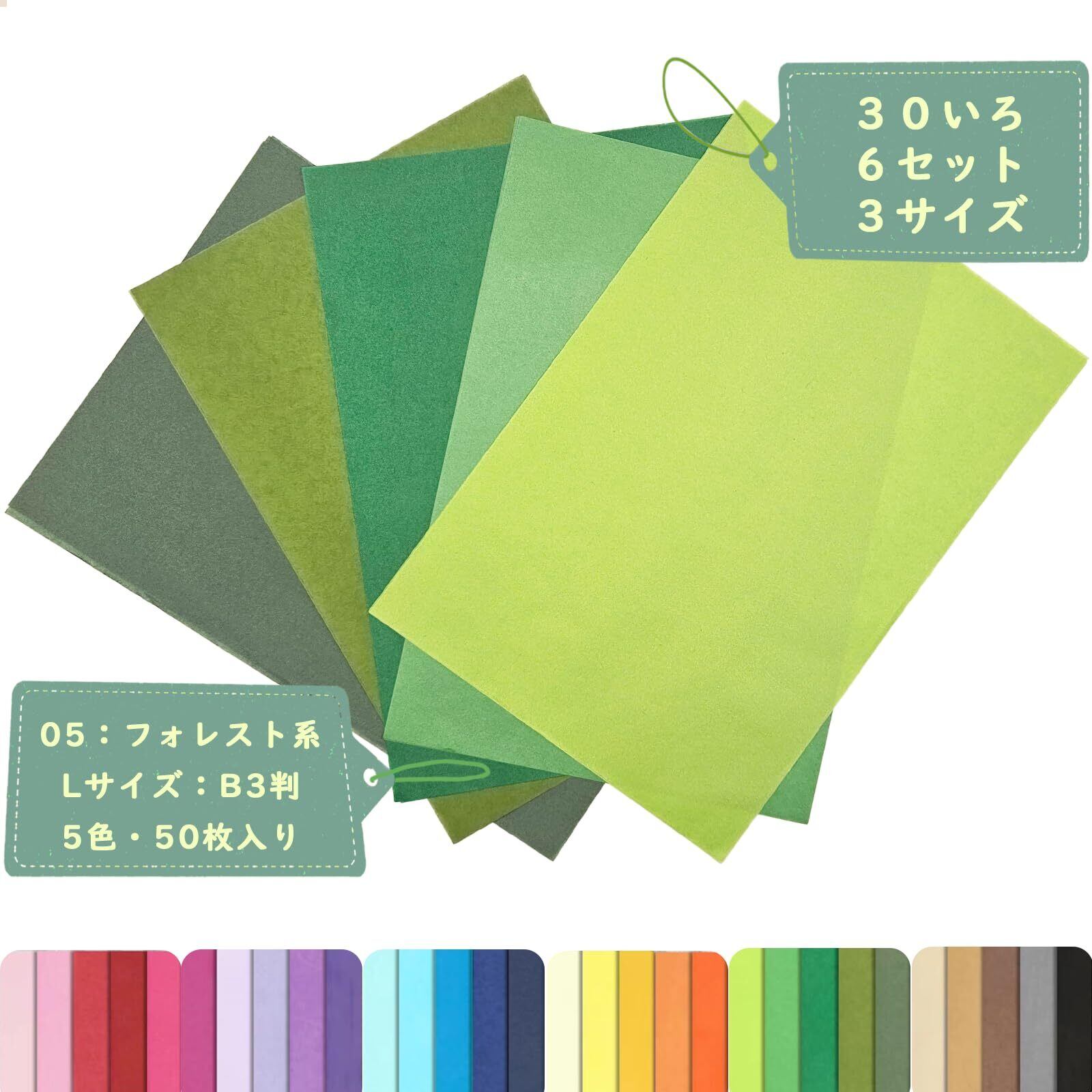 【2022最新】お花紙 ラッピングペーパー 【3サイズ・7セット・30色展開】 花紙 薄葉紙 おはながみ グラシン紙 フラワーペーパー 花束 包装紙 (05:フォレスト系, Lサイズ:B3判)
