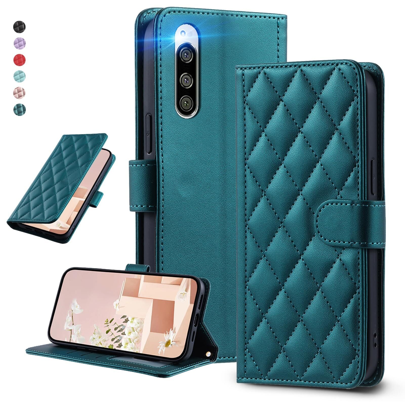 【人気商品】UnivoColors Sony Xperia 5(SO-01M/SOV41)キルティグレザー調 手帳型ケース エレガント 高質PU マグネット開閉 カード収納機能 スタンド機能 液晶全面保護 レンズ保護 ストラップ付属(グリーン) | KURASHILABO
