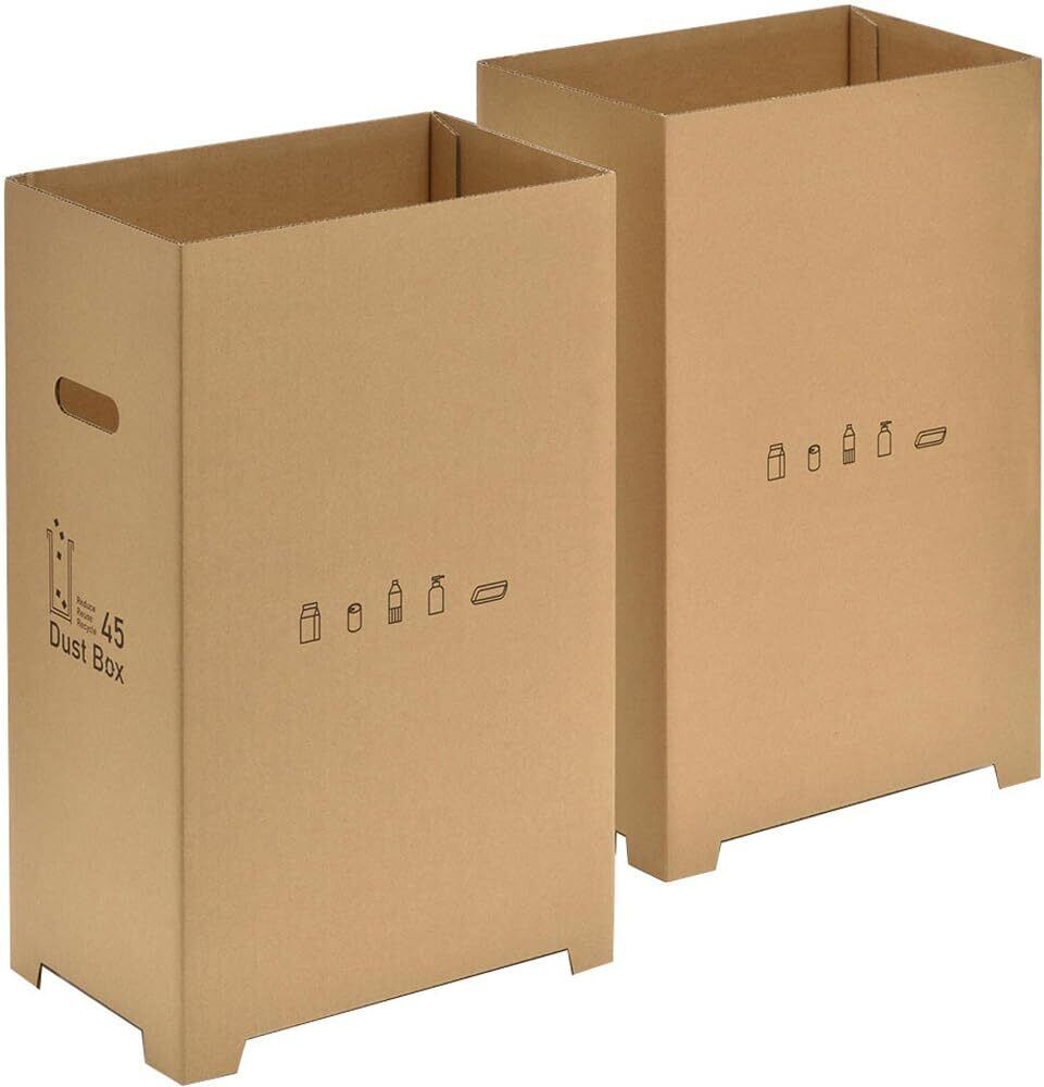 【特価セール】下村企販 リサイクルできるダンボール製ゴミ箱 45L 2個組 【日本製】 隙間に置けるスリム幅 資源ごみの分別に 簡単組み立て 折りたたんで収納 ダストボックス 燕三条 42696 | KURASHILABO