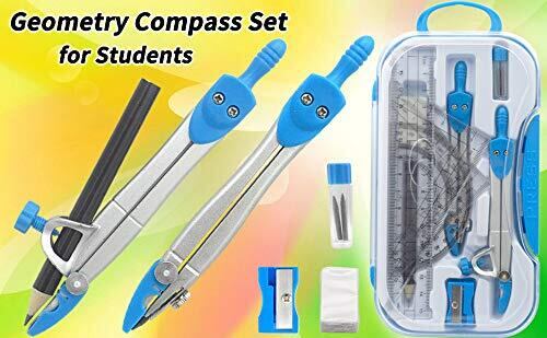 【特価セール】Tulokaスクールコンパス 算数こんぱす12点セット15cm直定規 2pcs三角定規 半円分度器 替え芯 消しゴム 鉛筆 幾何学 中学生 小学生 文房具 学用品 クリアケース付 ブルー | KURASHILABO