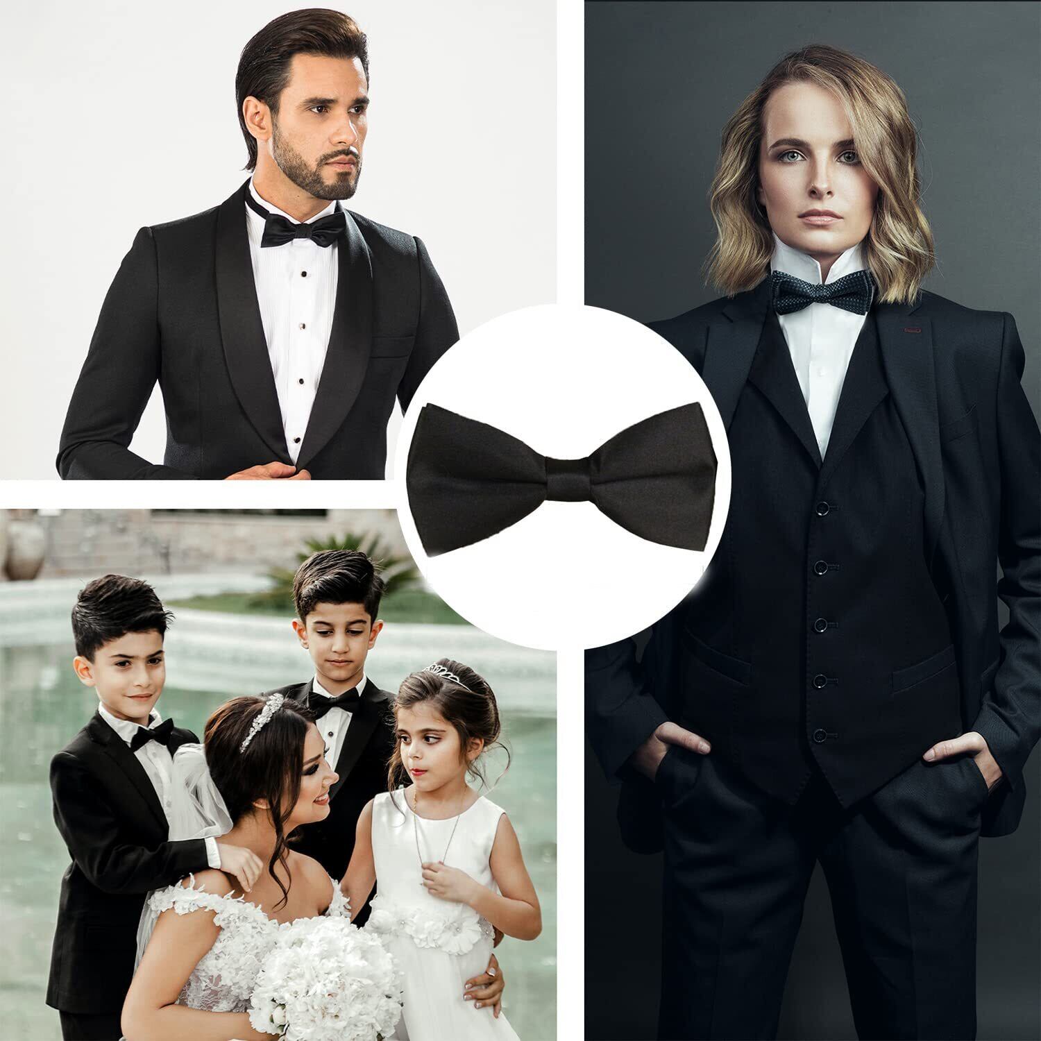 【人気商品】蝶ネクタイ ボウタイ 【3本セット】メンズ ブラック無地 ワンタッチ 蝶 ネクタイ ふじやま織 二重層 簡単 調整可能な お手軽に使用可能な フック 装着 大人 から 子供 卒業式 結婚式 まで 黒 | KURASHILABO