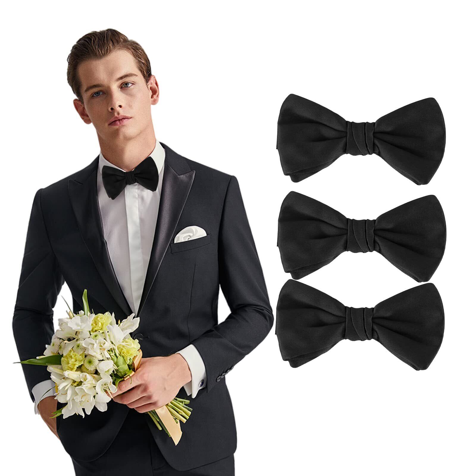 【人気商品】蝶ネクタイ ボウタイ 【3本セット】メンズ ブラック無地 ワンタッチ 蝶 ネクタイ ふじやま織 二重層 簡単 調整可能な お手軽に使用可能な フック 装着 大人 から 子供 卒業式 結婚式 まで 黒
