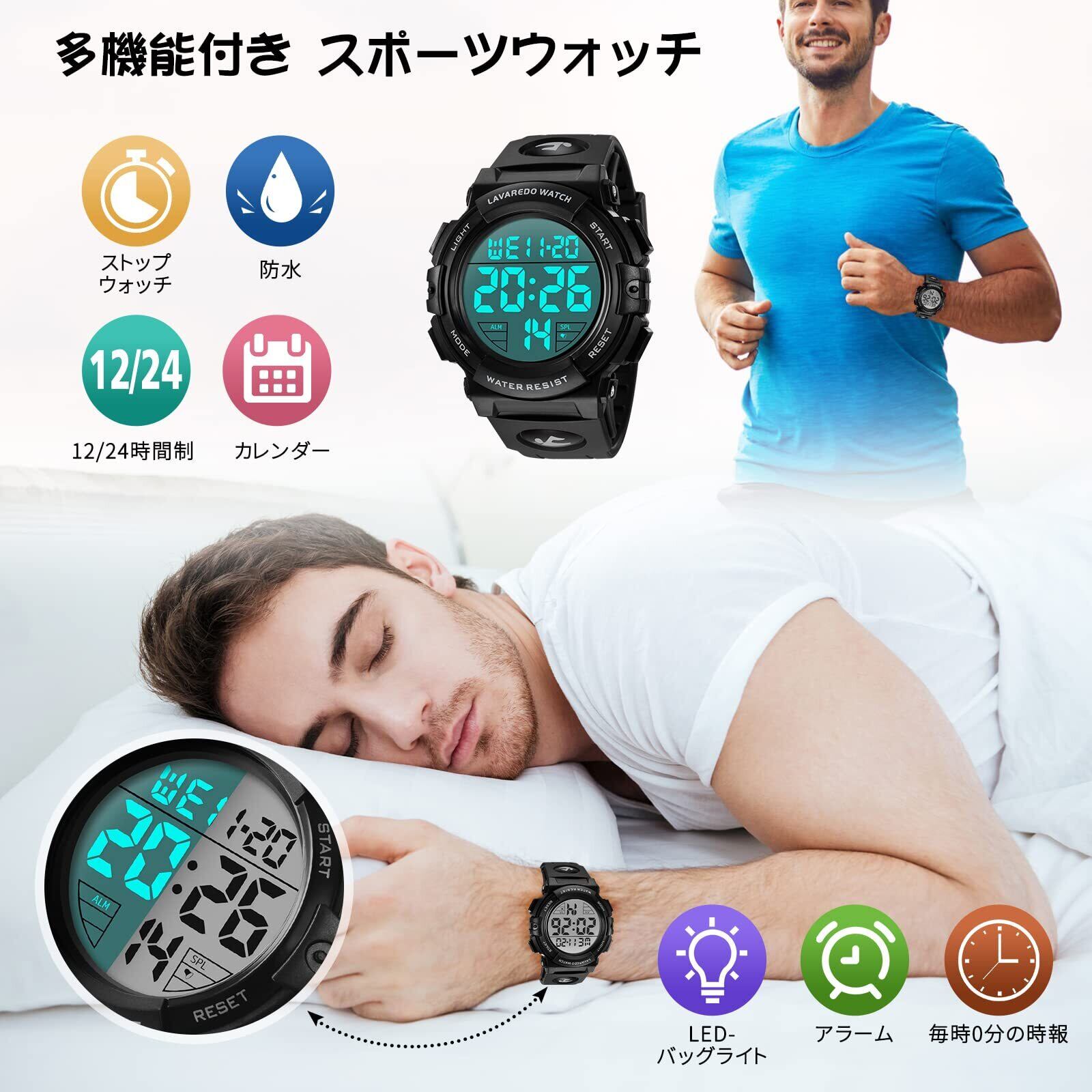 【新春セール】腕時計 メンズ デジタル 50メートル防水 日付 曜日 アラーム LED表示 多機能 スポーツウォッチ アウトドア おしゃれ 取扱説明書付き