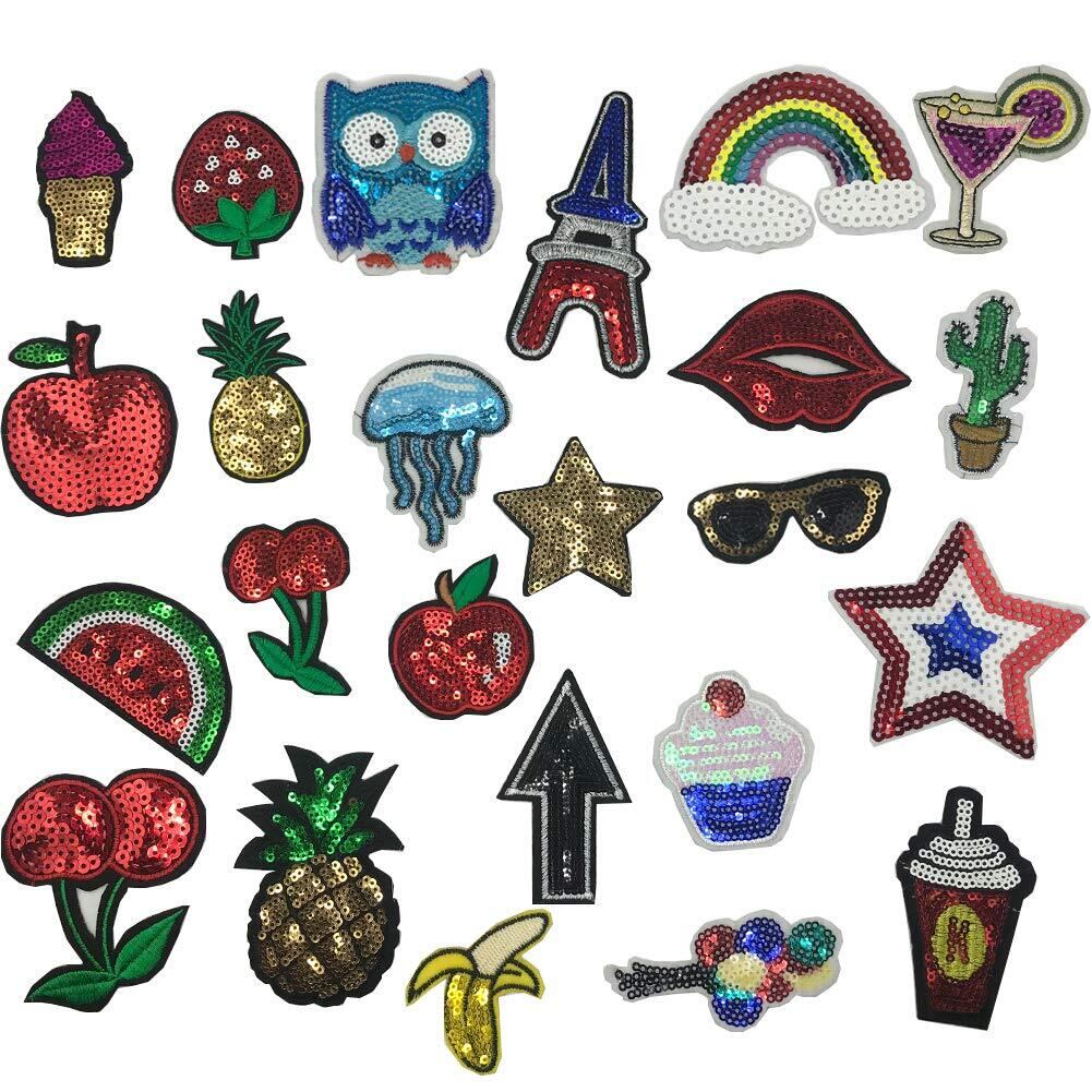 【特価セール】人気スパンコールアップリケ 24枚セット キラキラ刺繍ワッペン パッチステッカー ひざあて 貼り付け 縫い付け 手芸 DIY デコ かわいい星/果物/動物ワッペン TIANYING | KURASHILABO