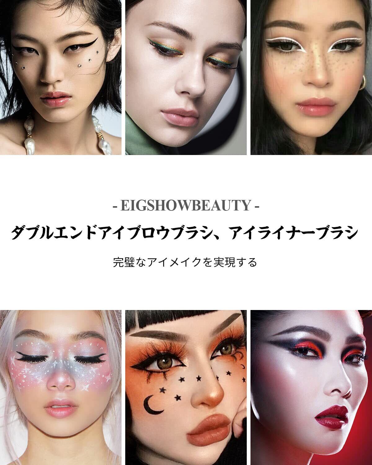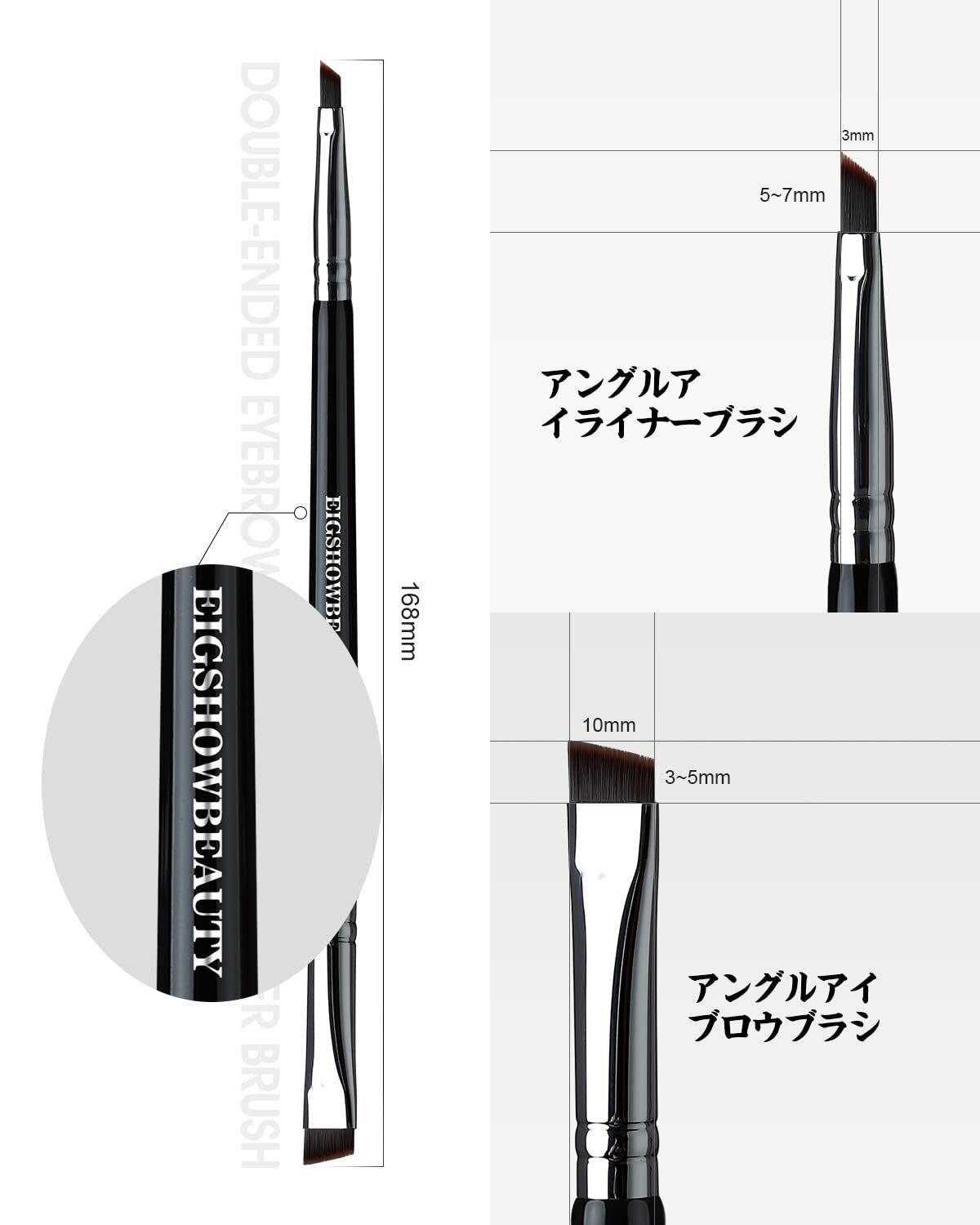 【在庫セール】EIGSHOW 1本2役 アイブロウブラシ&アイライナーブラシ プロフェッショナル ダブルエンドアイブロウアイライナー 斜め平筆(ブラックD104)