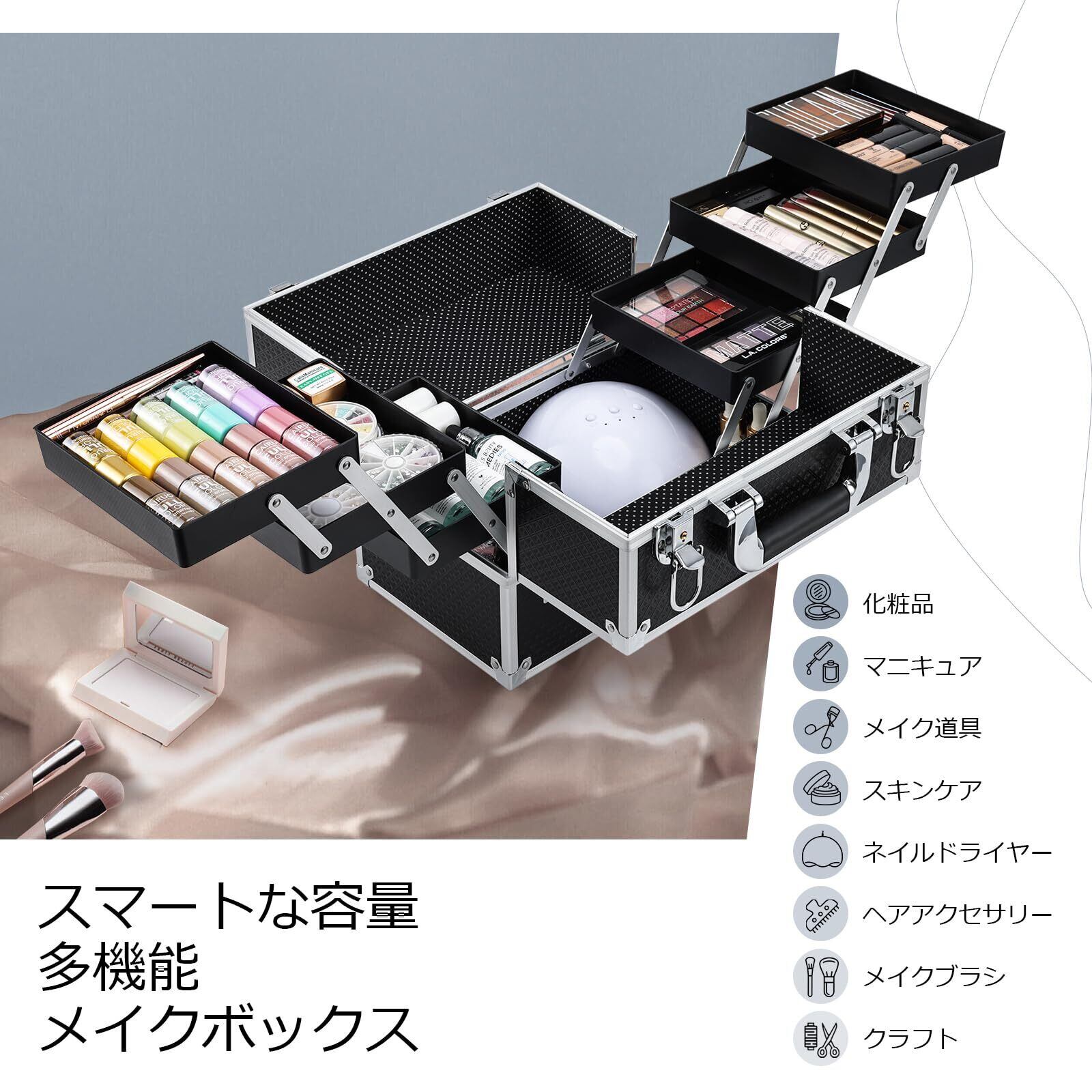 【在庫セール】Hapilife メイクボックス 化粧品収納ボックス メイク ボックス 大容量 コスメボックス 化粧箱 化粧品 収納ケース 化粧ボックス 化粧品ボックス 持ち運び(ブラック)
