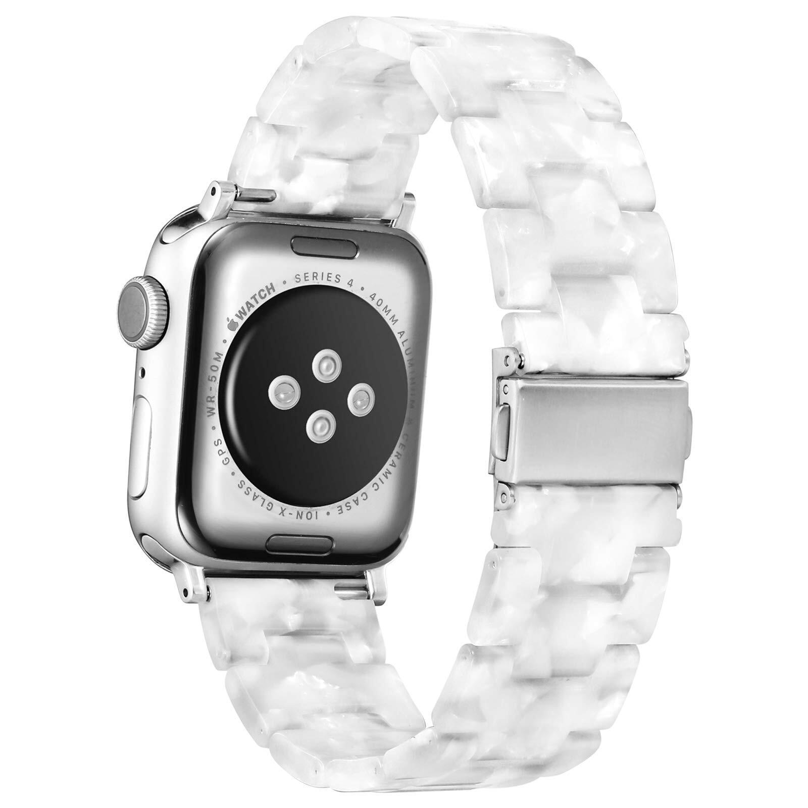 【2022最新】[Daturus] Apple Watch 樹脂ベルト ステンレス留め金 互換Apple Watch series11/10/9/8/Ultra/7/6/SE/5/4/3/2/1 サイズ46mm/45mm/44mm/49mm/(42mm Series 3/2/1) アップルウォッチ ベルト ファッション/カジュアルスタイル アップルウォッチ対応(パール・ホワイト)