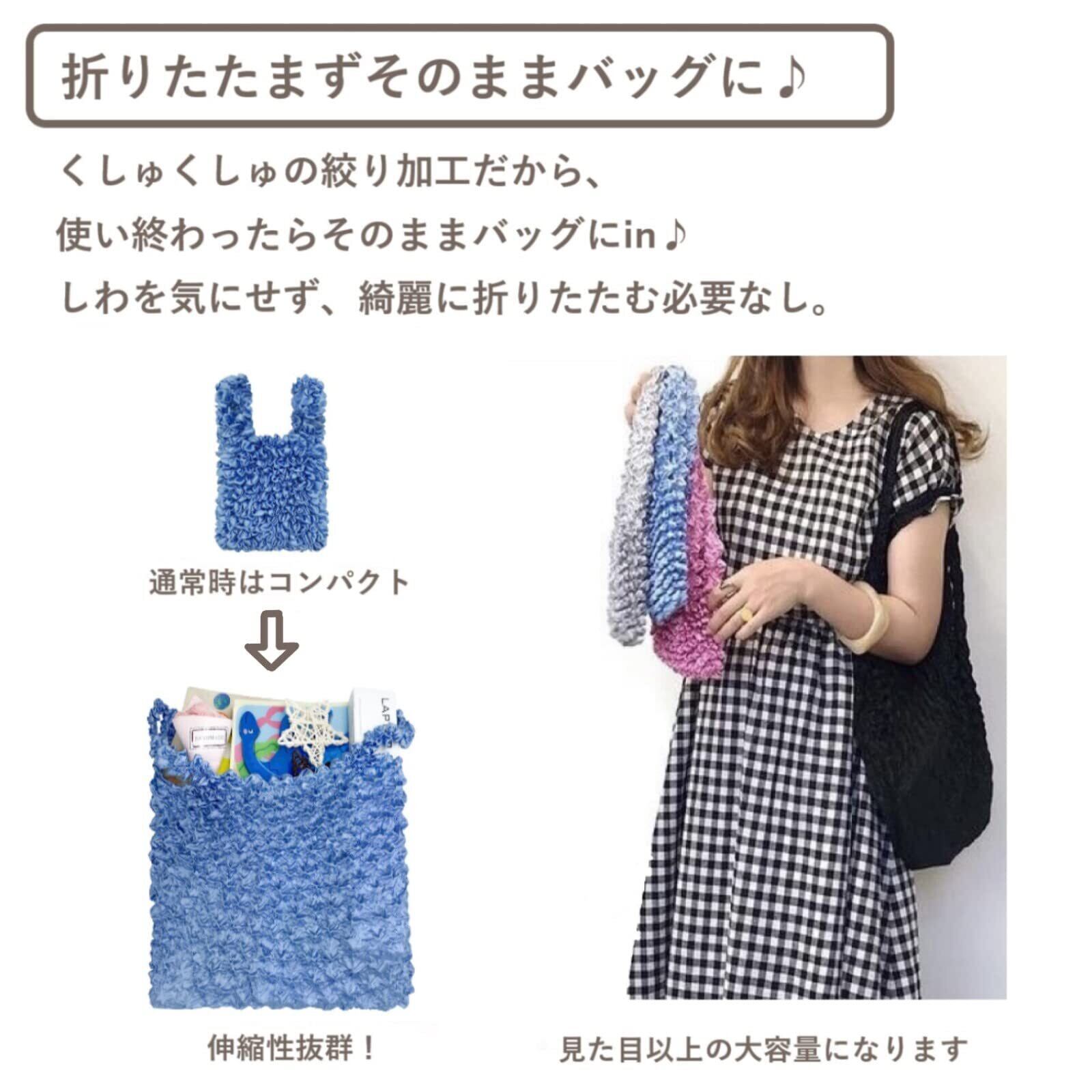 【新着商品】[FRACARKOS] エコバッグ 大容量 しぼり 伸びるエコバッグ サテン 絞り 折りたたみ 不要 レジ袋 お買い物バッグ 伸縮 | KURASHILABO
