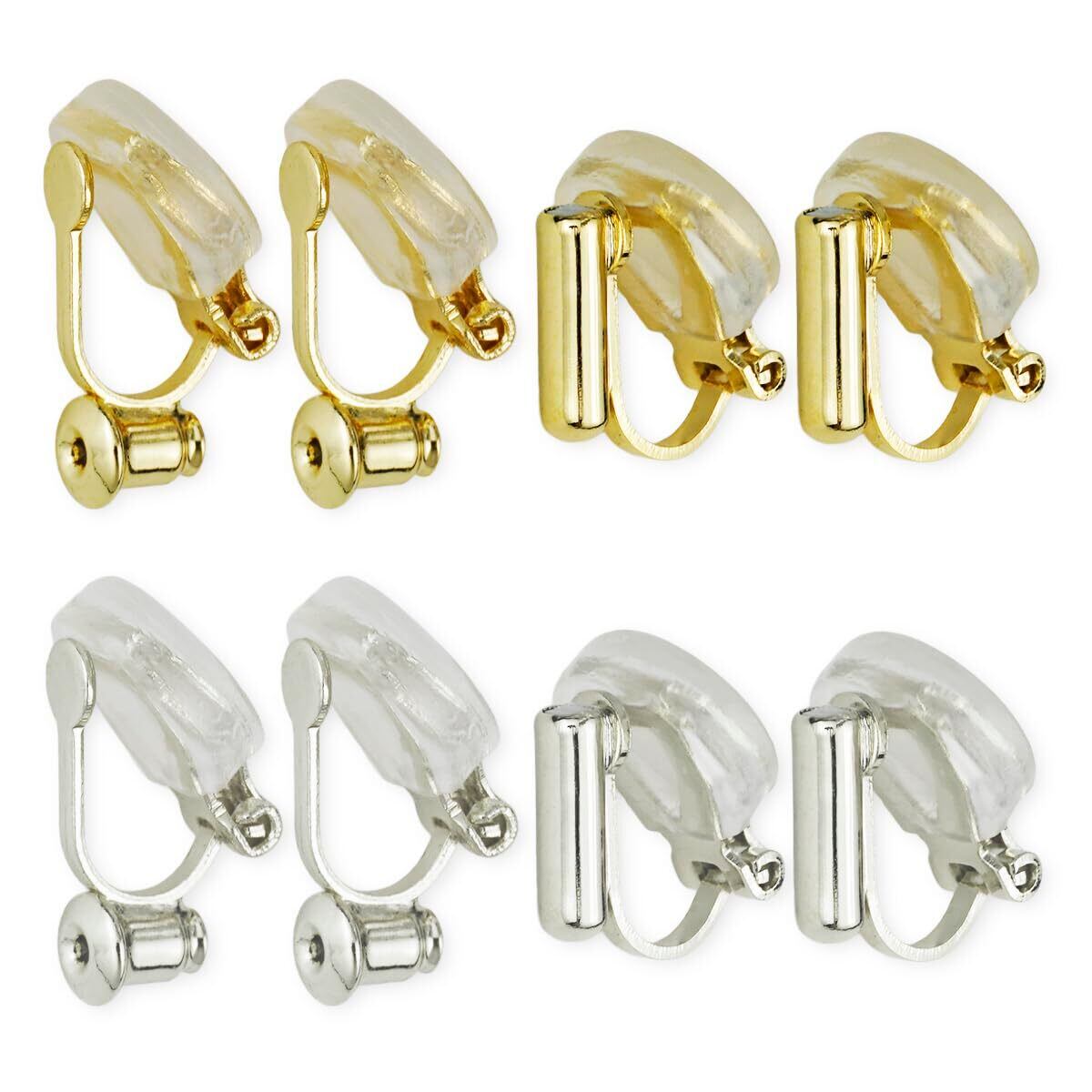 【在庫セール】イヤリングコンバーター 蝶バネ クリップ式 横型 縦型 シリコンカバー付 ゴールド シルバー 2種4ペア | KURASHILABO