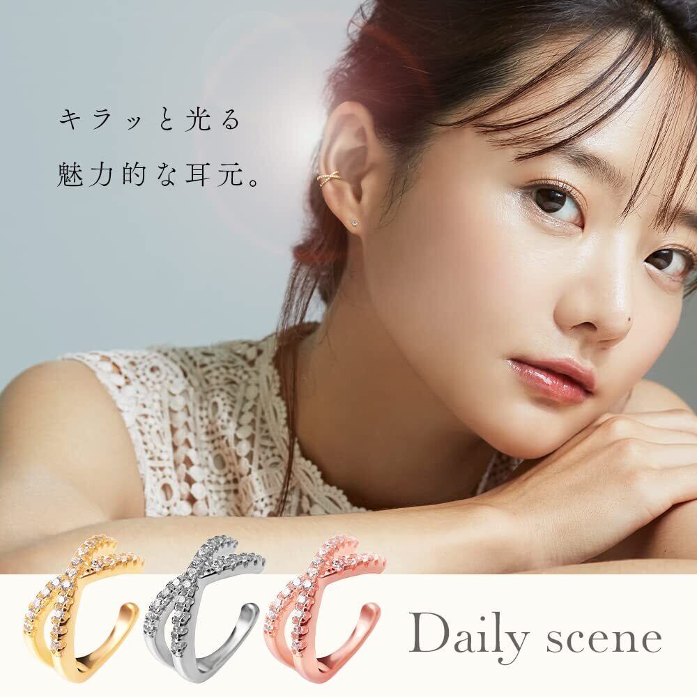 【数量限定】[L'a Poume (ラポーム)] イヤーカフ イヤカフ イヤリング シルバー925 金属アレルギー対応 キュービックジルコニア クロスデザイン レディース