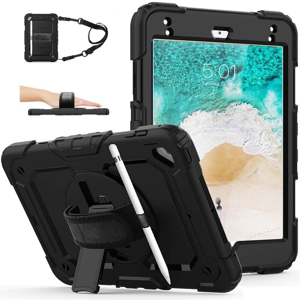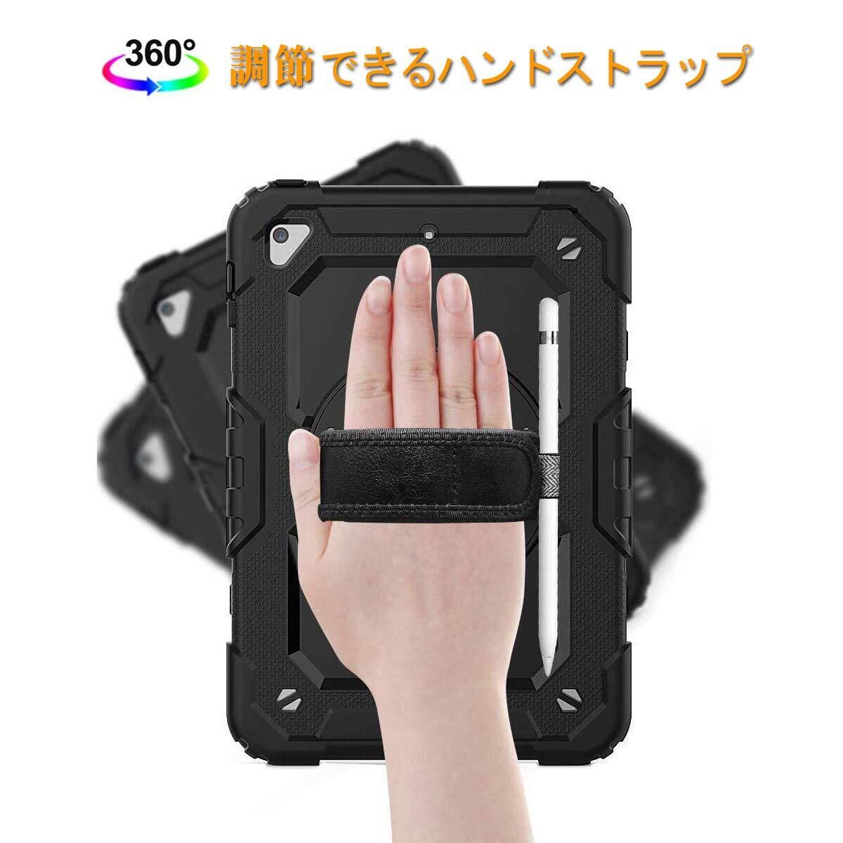 【数量限定】Herize iPad 第6世代/5世代/pro 9.7/Air2 ケース 耐衝撃 頑丈三層鎧 落とす保護 保護フィルム付き 「360°回転スタンド」 「360°回転握り方」 「調節可能」 「ペン収納」柔らかい 丈夫 ハンドストラップ 防塵 実用 多機能 子供 iPad 6世代/5世代/Air2 9.7’’ 2018/2017 ケース(ブラック)
