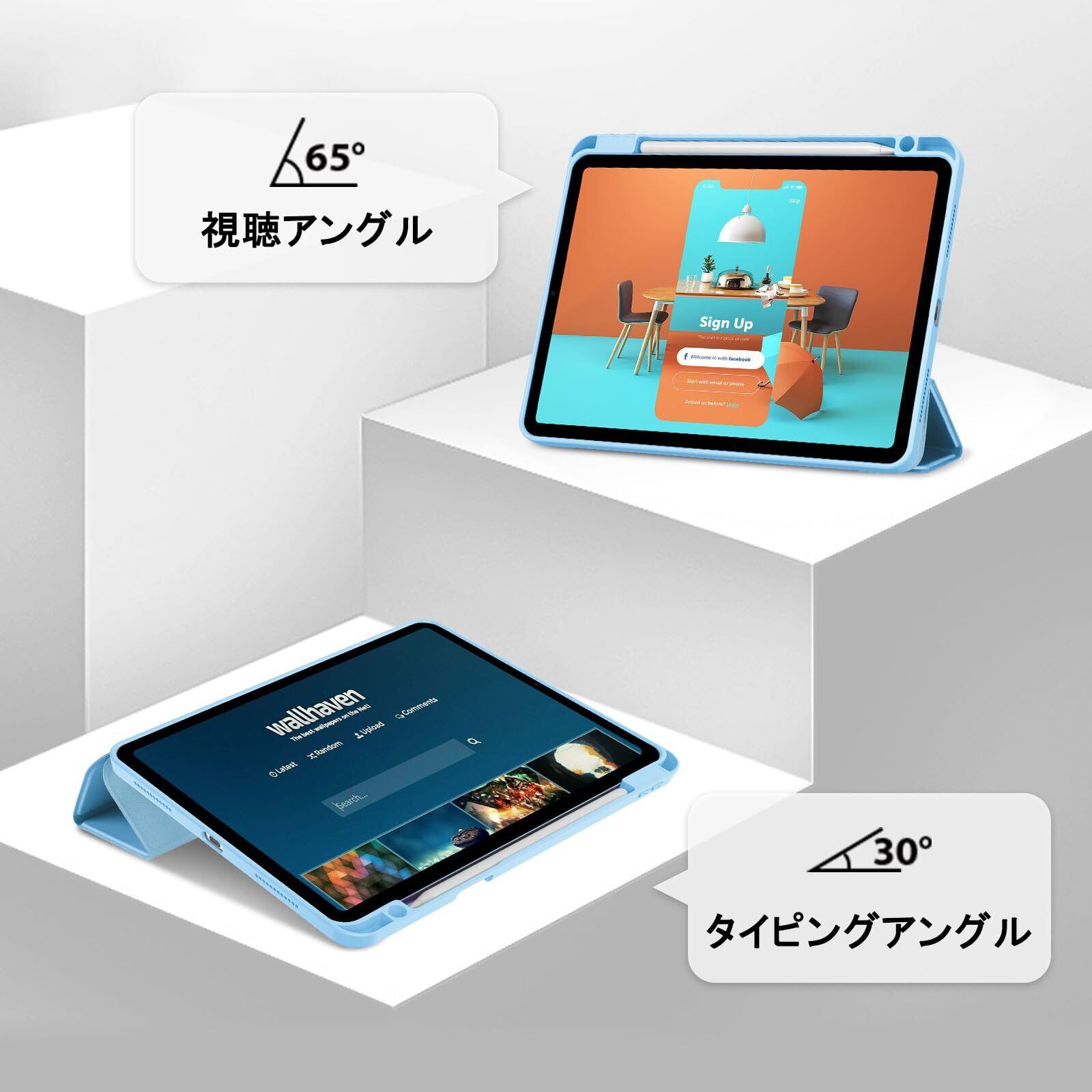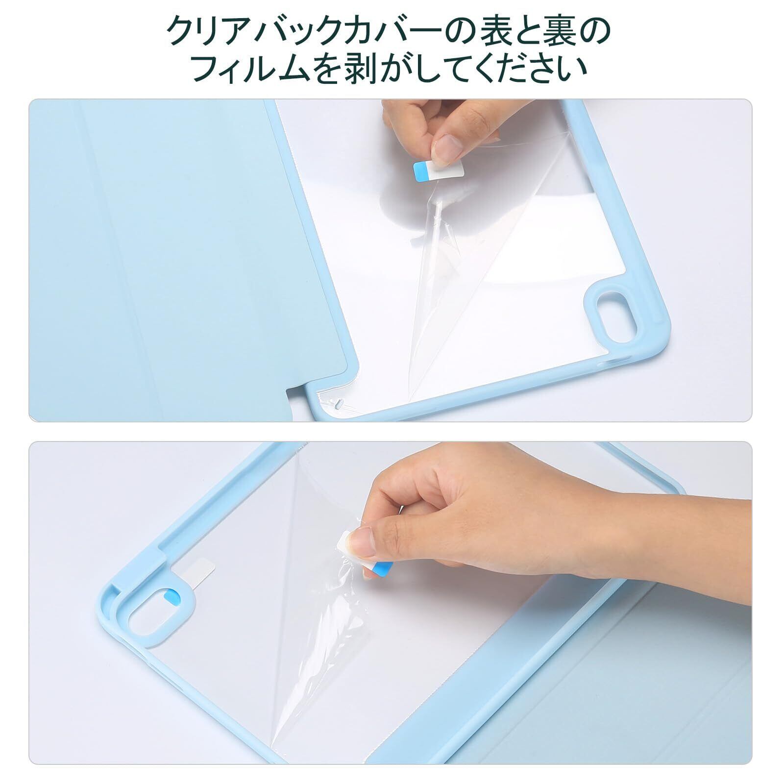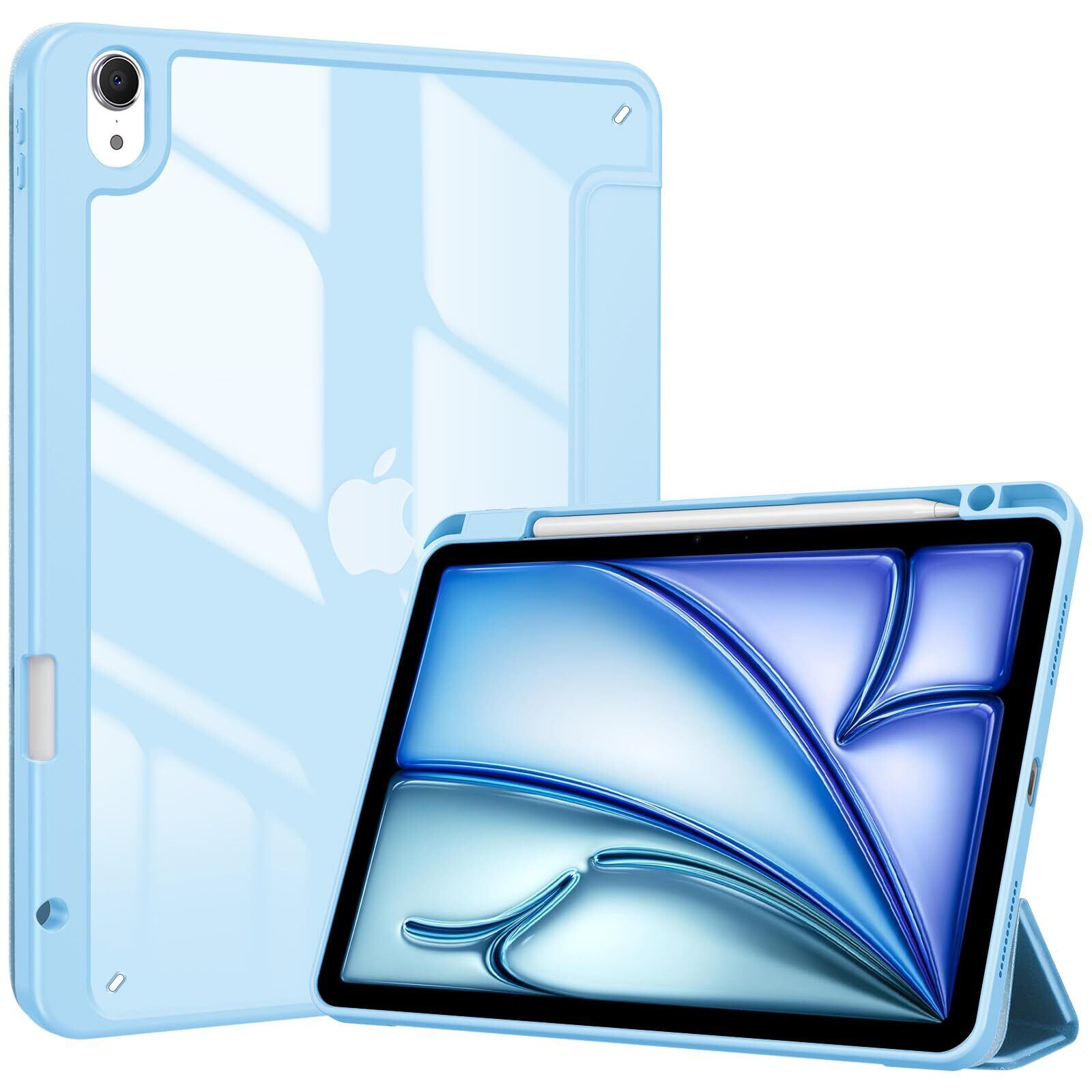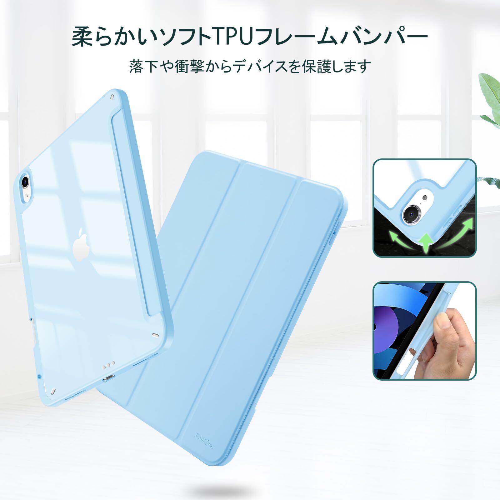 【在庫セール】ProCase iPad Air 11インチ ケース M4(2026) / M3 (2025) / M2 (2024) / iPad Air5 (2022) / Air4 (2020) 10.9インチ 透明 クリアカバー ペン収納 耐衝撃 三つ折り スタンド スマートカバー -スカイブルー