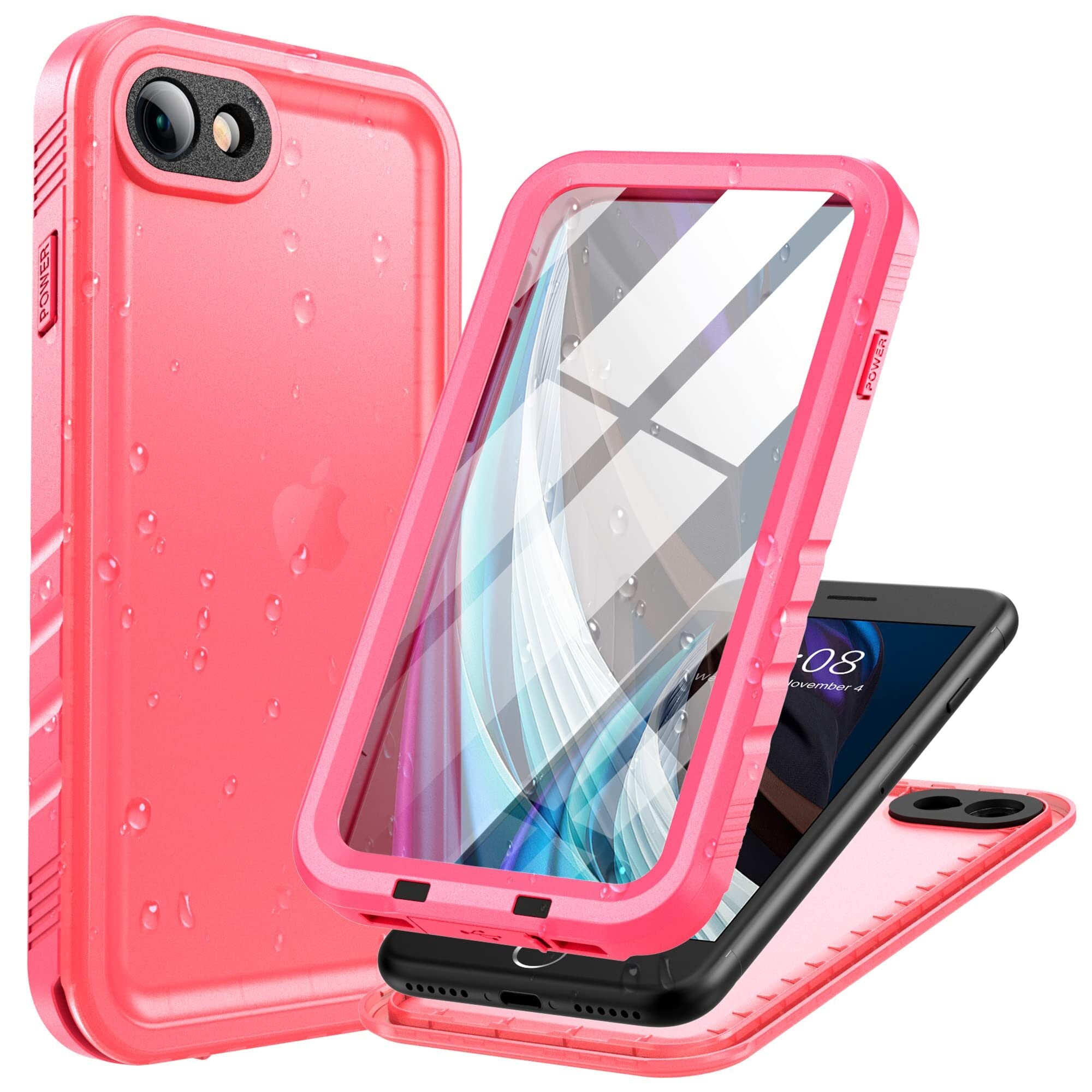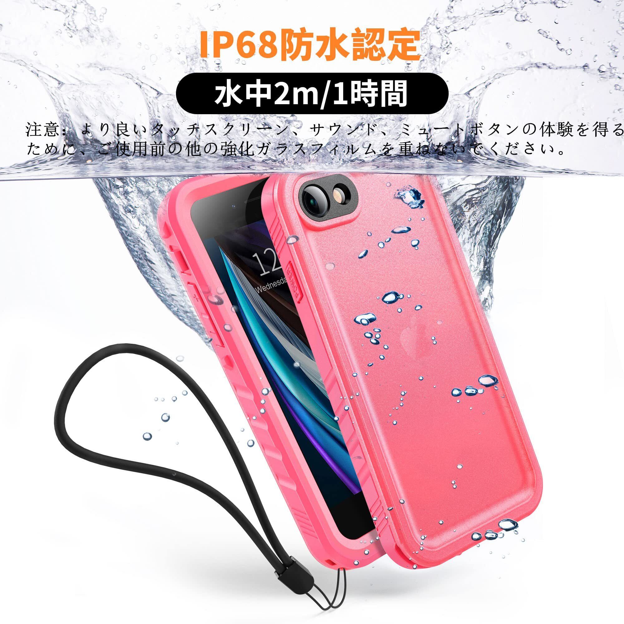 【2022最新】Cozycase 対応 iPhone SE2 / iPhone SE3 / iPhone 7 / iPhone 8 ケース - iPhone SE2 用 防水ケース 防水 防塵 耐衝撃 両面 全面 お風呂 海 iPhone SE3 用 ケース ストラップ 米軍 カメラ保護 QI充電 アイフォンSE(第二世代)2020/ SE(第三世代)2022 / 7 / 8に対応「4.7インチ-ピンク」