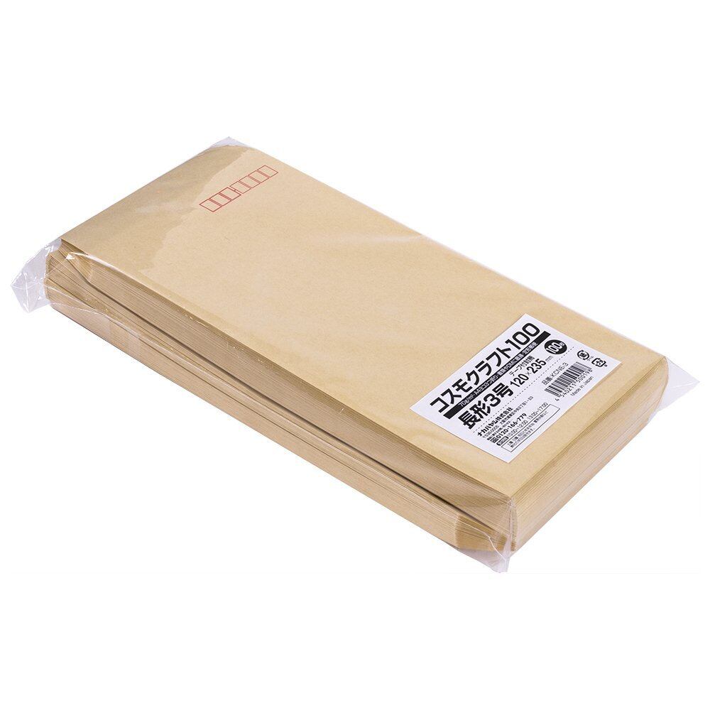 【2022最新】クラフト封筒 長形3号 A4ヨコ3つ折 テープ付 100枚 KCNE-3