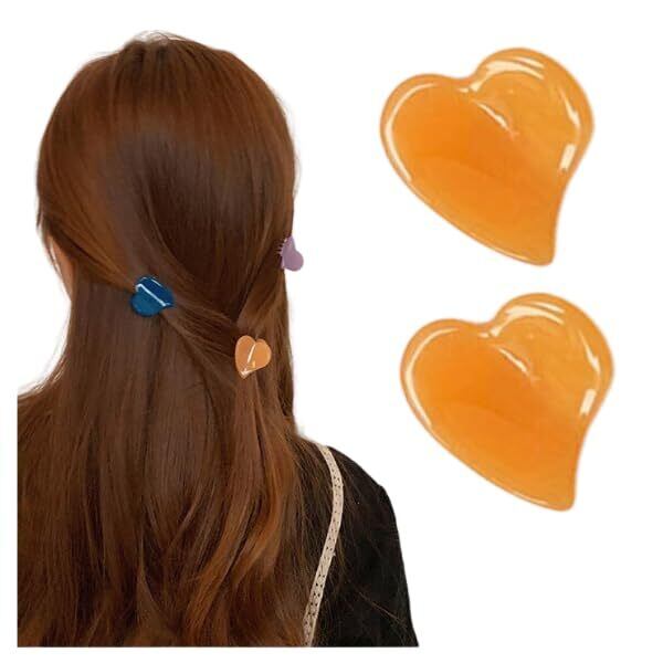 【新着商品】2コセット ミニ ハート キッズ ベビー ヘアピン くすみカラー パステルカラー かわいい 韓国 おしゃれ 髪留め 髪飾り ぱっちん留め パッチン 子供用 子ども ピン レディース 子供 幼稚園 保育園 入園準備 女の子 誕生日 ヘアクリップ こども (オレンジ)