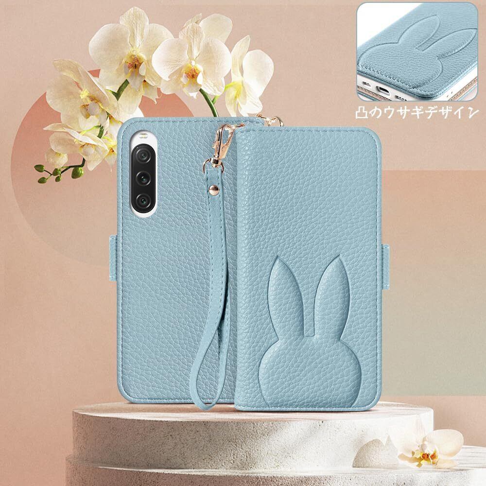 【在庫処分】For Xperia 10 V ケース 手帳型 かわいい Xperia 10 V SO-52D ケース 人気 SO-52d ケース SOG11 ケース 横置き機能 エクスペリア 10 V ケース 手帳型 女性 おしゃれ 便利 カード収納 動物 高級PUレザー エクスペリア10 5 ケース 男女兼用 贈り物 どうぶつ 兎柄(/SO-52D/SOG11,6.1"),ライトブルー