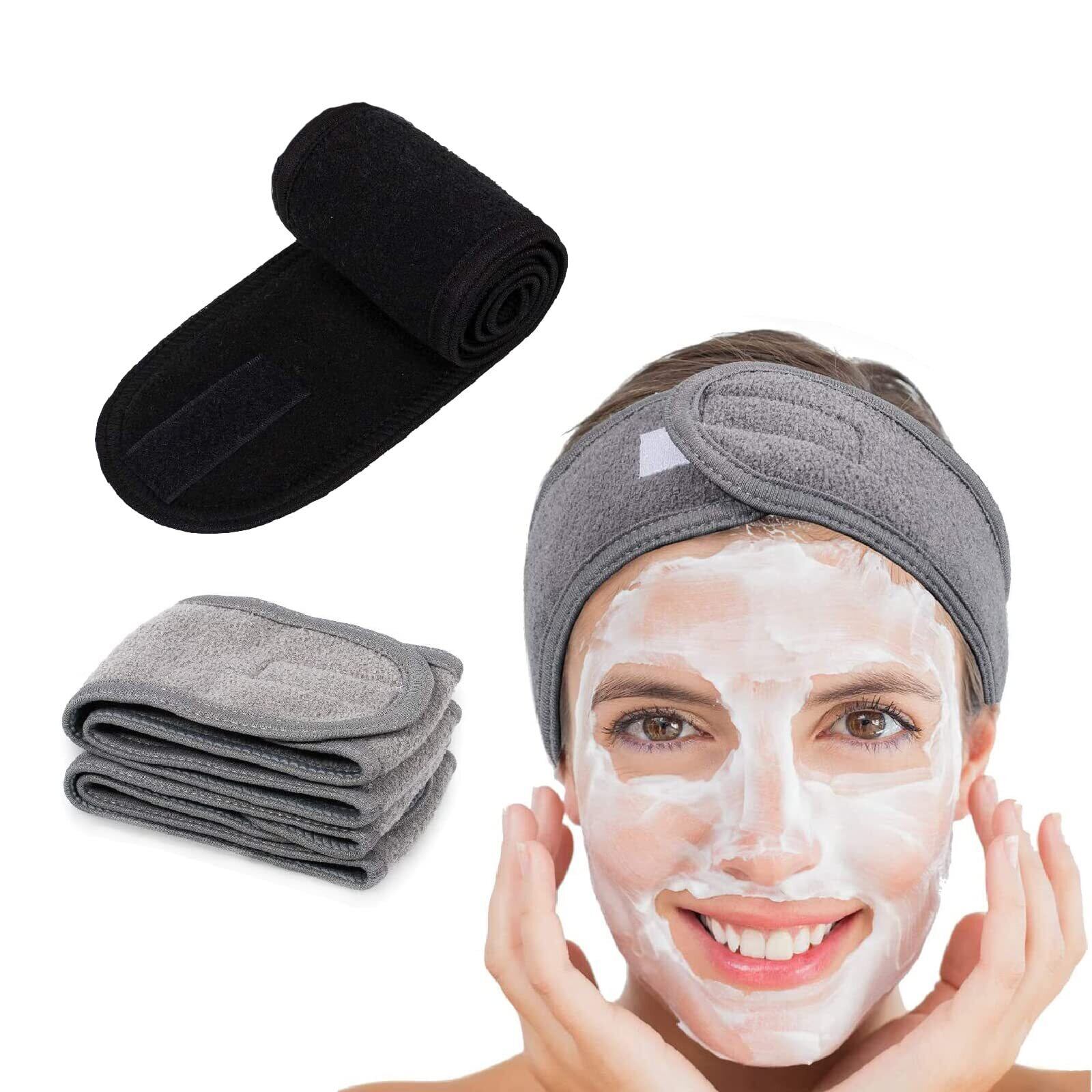 【特価商品】サムコス ヘアバンド 洗顔 ターバン ヘッドバンド 吸水 洗顔 カチューシャ ヘアバンド化粧 ヘッドバンド 髪留め 洗顔バンド マジックテープ 男女兼用 2枚セット(ブラック+グレー) | KURASHILABO