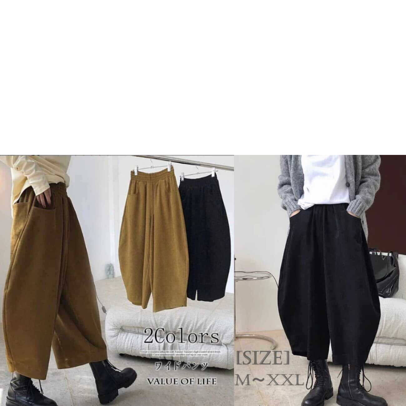 【在庫セール】【1/2style】 レディース サルエルパンツ バルーンシルエット ハイウエスト ゴム仕様 無地 体型カバー おしゃれボトムス | KURASHILABO