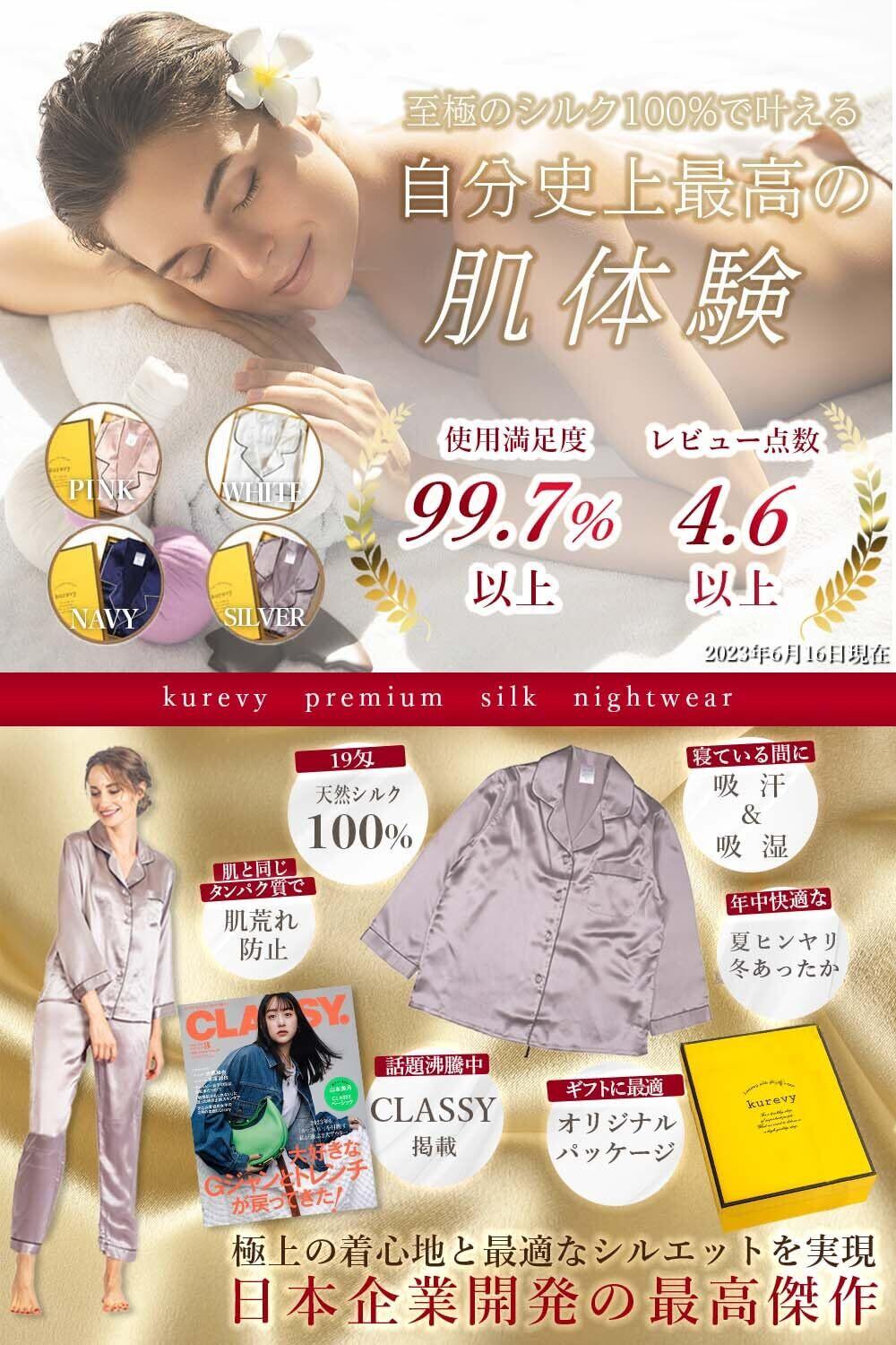 【新春セール】[kurevy] レディース シルクパジャマ 上下セット 高級シルク100% 6Aランク 前開き 長袖 静電気防止 日本メーカー国内検品検査済み