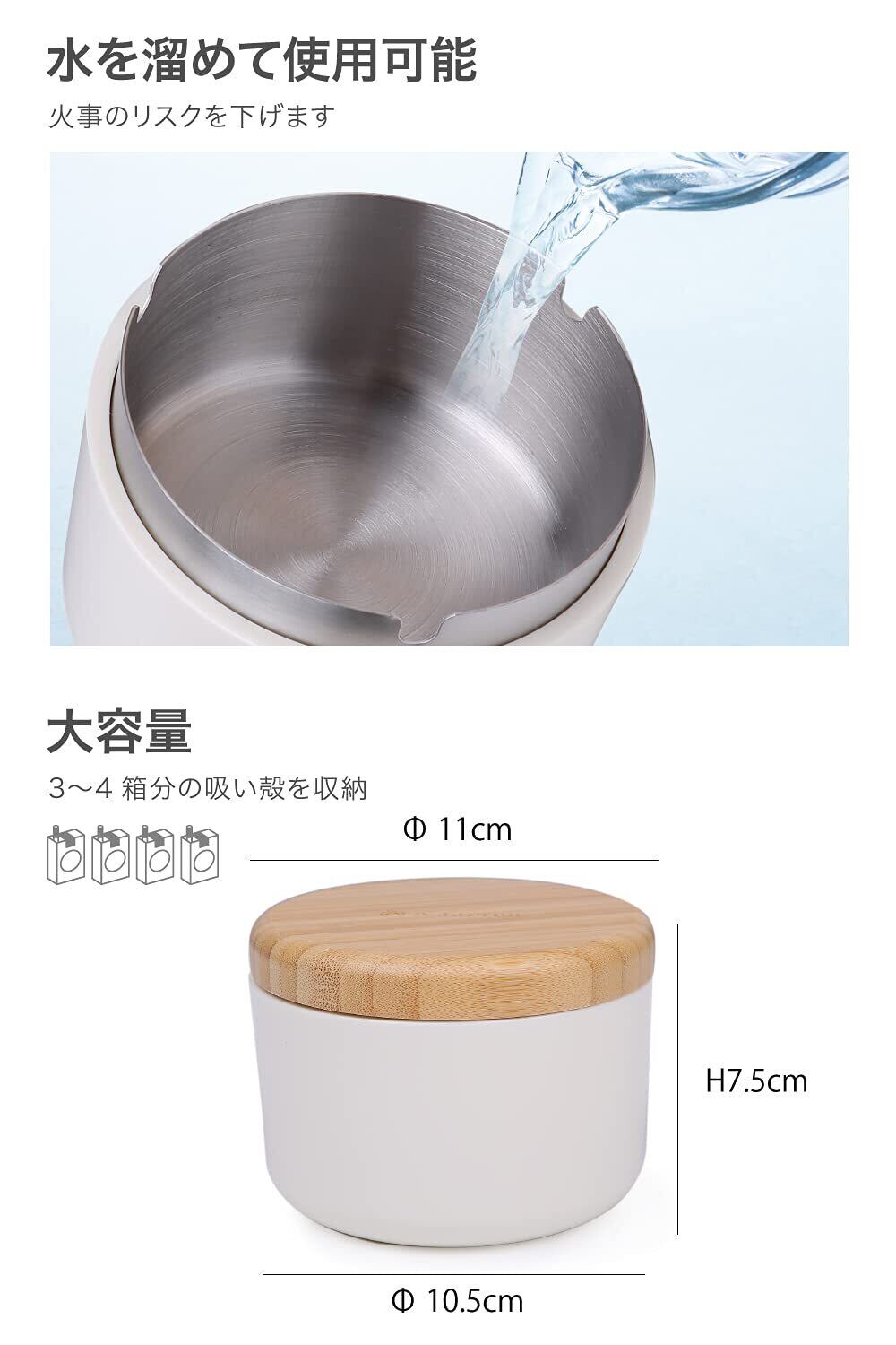 【人気商品】【公式】 Ashterior ステンレス × 木製× PP の機能的融合 ふた付き 灰皿 大容量 卓上 屋外 にも アッシュテリア (ホワイト)