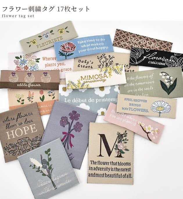 【人気商品】MYmama フラワー 刺繍 タグ 17枚セット ワッペン ハンドメイド ラベル