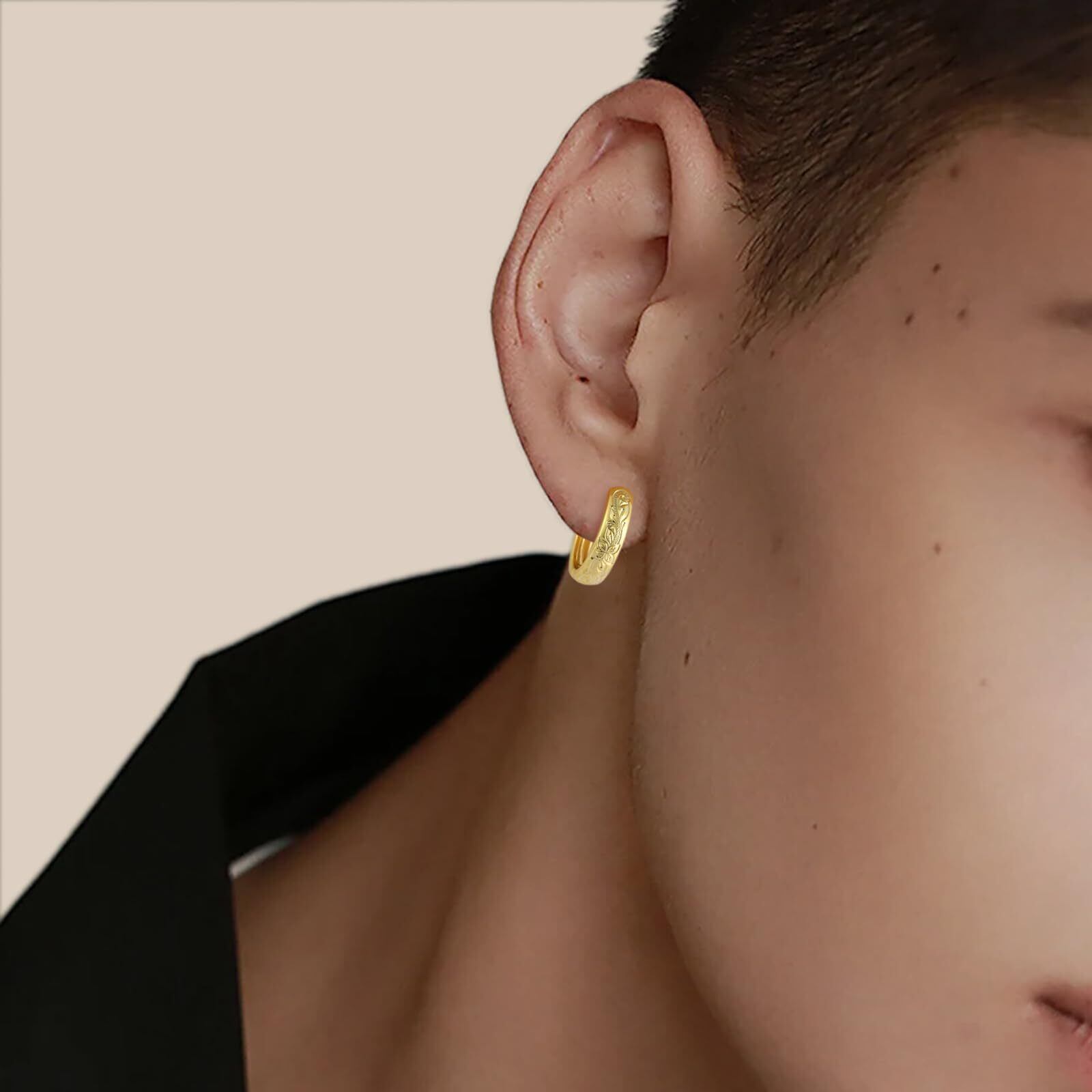 【特価セール】KRKC&CO フープピアス ハワイアンジュエリー メンズピアス 15mm プルメリア 彫り リングぴあす 両耳 金属アレルギー対応 14金メッキ 18G シルバーピアス 男女兼用 シンプル おしゃれ | KURASHILABO