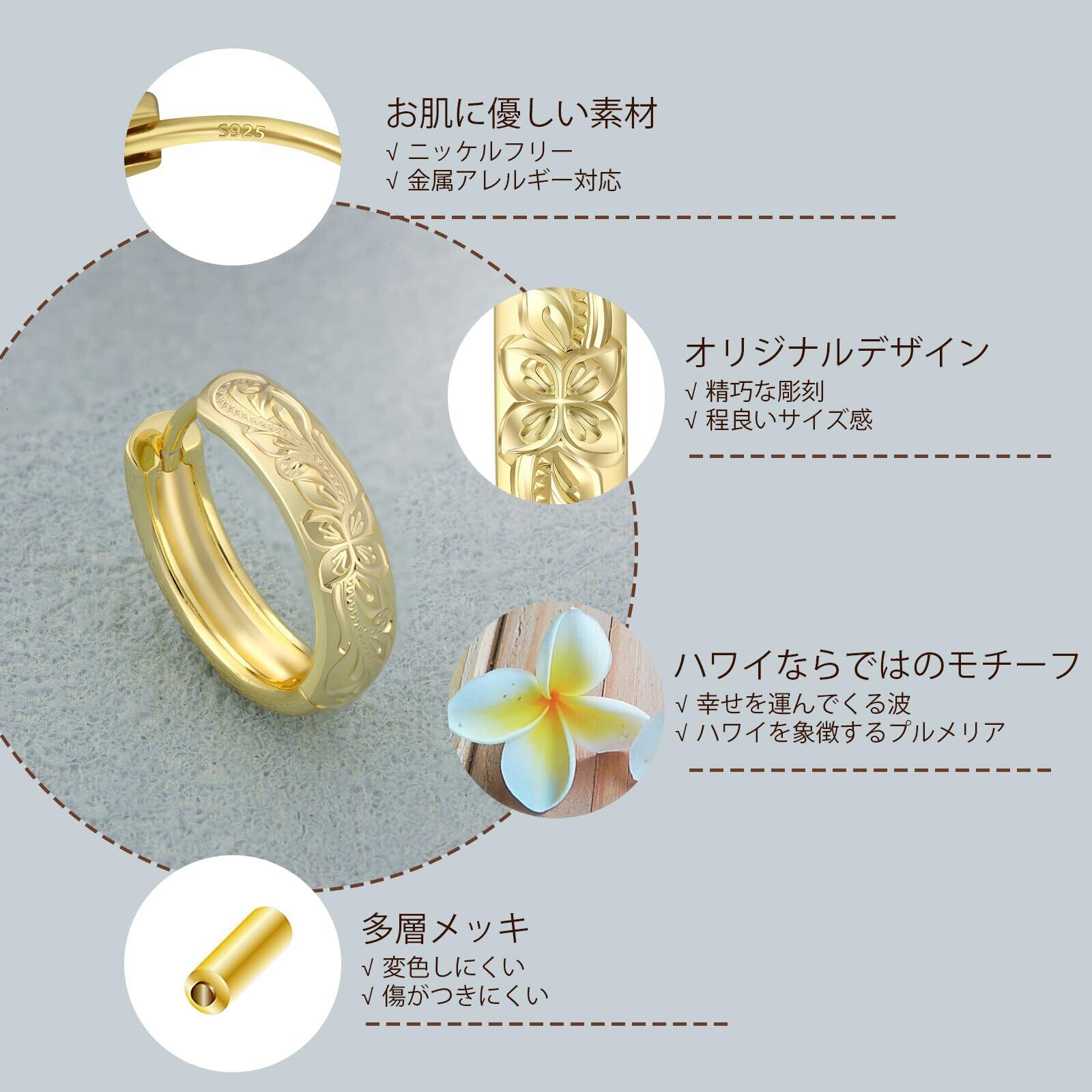 【特価セール】KRKC&CO フープピアス ハワイアンジュエリー メンズピアス 15mm プルメリア 彫り リングぴあす 両耳 金属アレルギー対応 14金メッキ 18G シルバーピアス 男女兼用 シンプル おしゃれ
