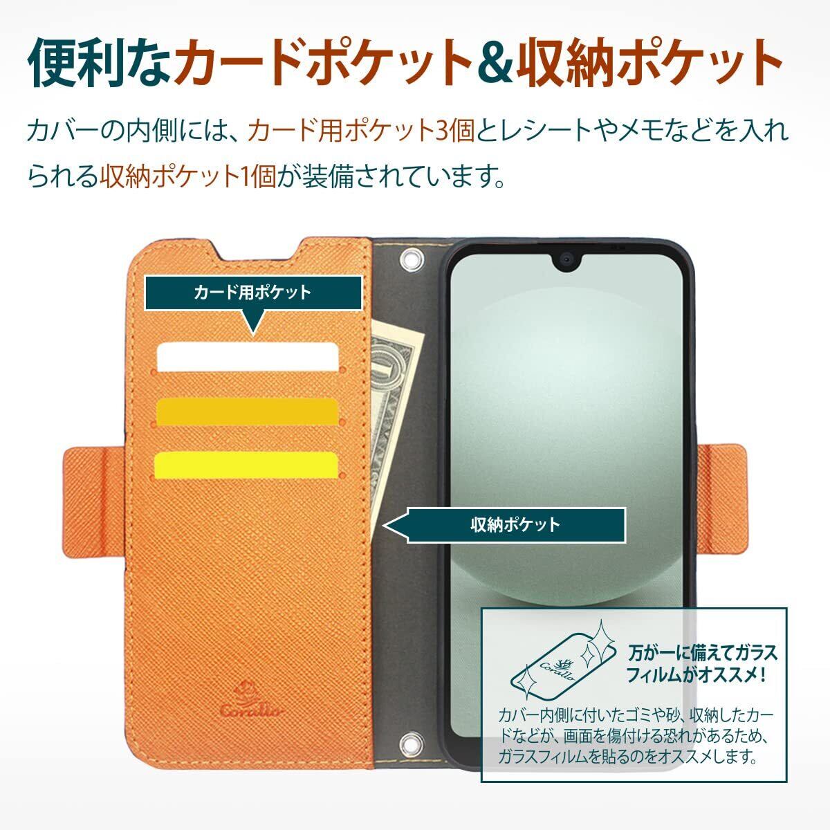 【人気商品】【Corallo】 AQUOS wish3 対応 手帳型 ケース/カード 収納/ストラップ/スタンド 機能 付 レザー スマホケース マグネット ベルト 革 カバー アクオスwish3ケース [ SHARP AQUOSwish3 アクオス ウィッシュ 3 SH-53D 対応 ] NU ブラック×オレンジ