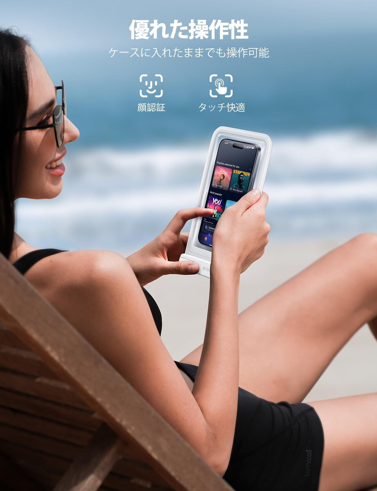 【特価商品】【小物収納ポケット付き】 スマホ 防水 ケース Lamicall : IPX8 海 プール ダブルパック すまほ ぼうすい バッグ カバー ポーチ 水中 撮影 顔認証 通話 スマフォ アイホン 携帯 けいたい 首かけ 海水浴 水泳 潜水 iPhone 17 Air 16e 16 15 14 plus pro max 13 mini 12 se Huawei Xperia android に対応 白