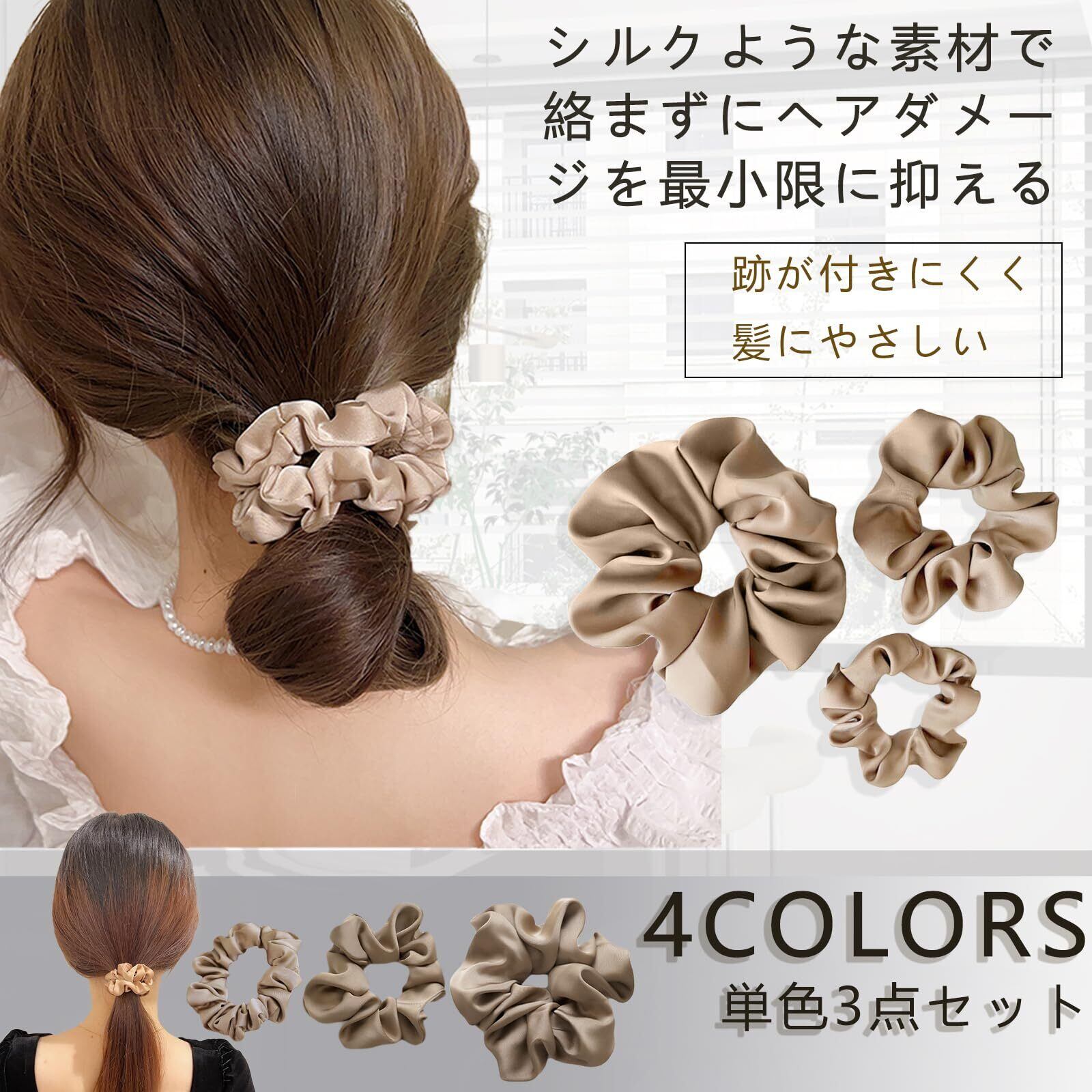 【特価セール】ヘアゴム シュシュ 3点セット 髪留め おしゃれ 髪ゴム 100%シルク 跡がつかない 大人 ヘアアクセサリー 髪に優しい 結きやすい かわいい