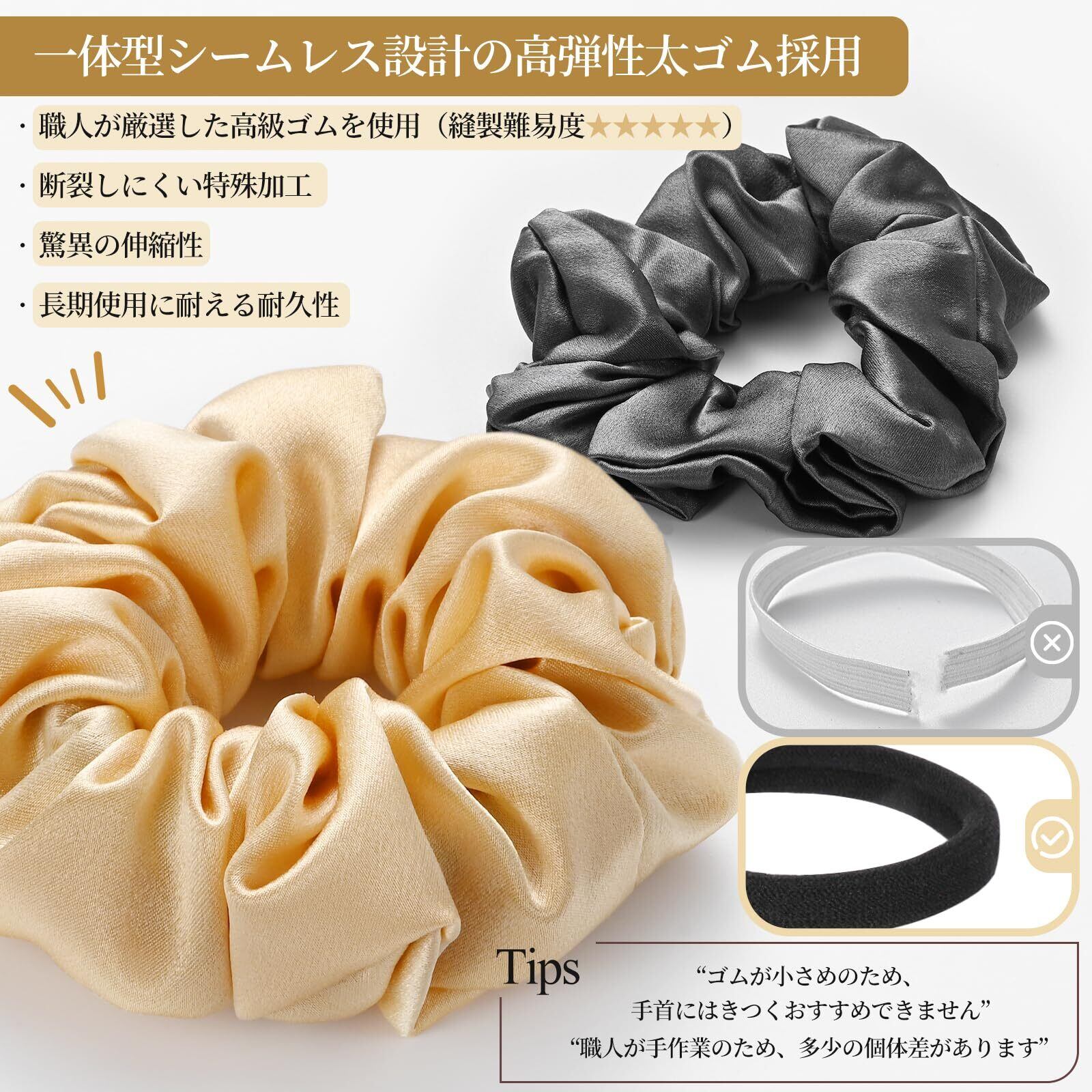 【在庫セール】シルク シュシュ 3.5cm 24色 天然シルク100% ヘアゴム 19匁 / 22匁選べる 摩擦軽減 静電気防止 髪に優しい 跡がつかない 髪ゴム 高弾性 おしゃれ 大人 女性 ヘアアクセサリー 母の日ギフト (ブラック+ベージュグレー, 19匁) | KURASHILABO