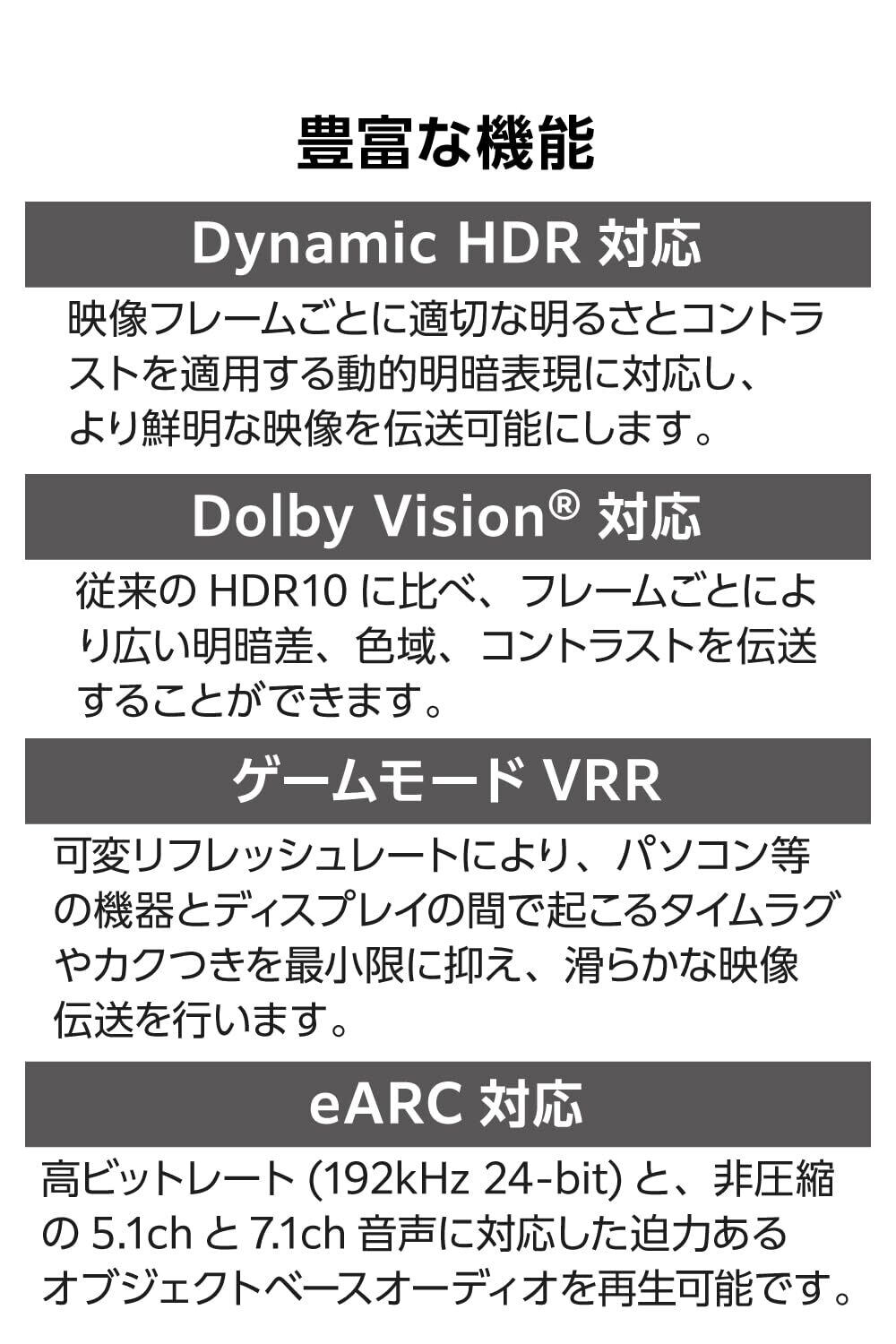 100Mbpsのイーサネット通信を実現する、HEC(HDMIイーサネットチャンネル)に対応しています。