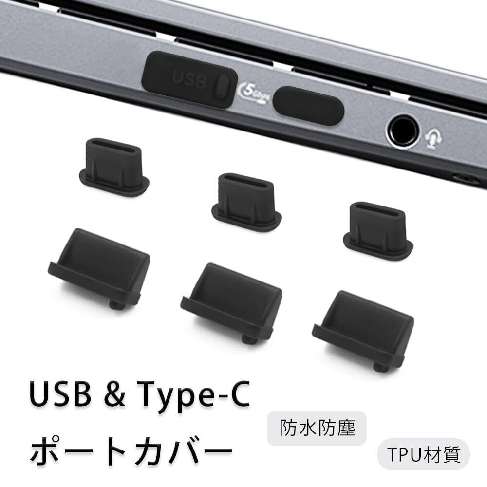 USB-Aポートカバー(10個)+Type-Cポートカバー(10個) コネクタカバー usb キャップ usb 蓋 保護キャップ 防塵 防水 汚れ防止 (ブラック)