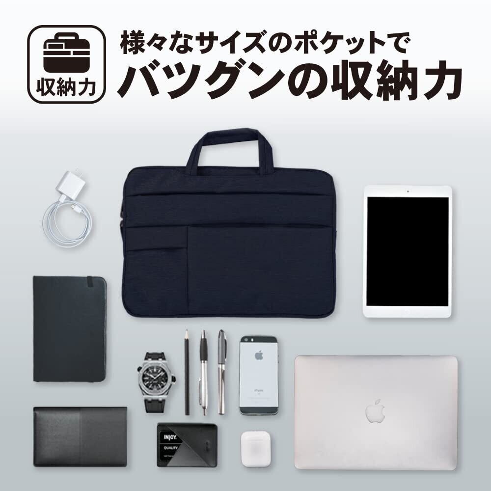 【収納力】様々なサイズのポケットでバツグンの収納力。バラバラになってしまいがちな小物類もスッキリ収納できます。 【軽量】厚さわずか3cmの超軽量&シンプル設計。持ち運びに最適です。 【撥水設計】バッグ表面には撥水素材を採用。急な雨でも大切なPCをお守りします。 【2way仕様】持ち手を簡単に収納でき、シーンに合わせてご使用いただけます。 【選べる7色】グレー、ライトグレー、ブラック、ピンク、ブルー、ネイビー、ミントグリーンの7色をご用意。ピッタリの色が見つかります。 【こだわりの裏地】バッグ内にはフワフワとした柔らかな素材を採用。クッション性もあるので、キズや衝撃から大切なPCをお守りします。 【高品質ジップ】高品質なジップを採用することにより、滑らかな開閉を実現しました。