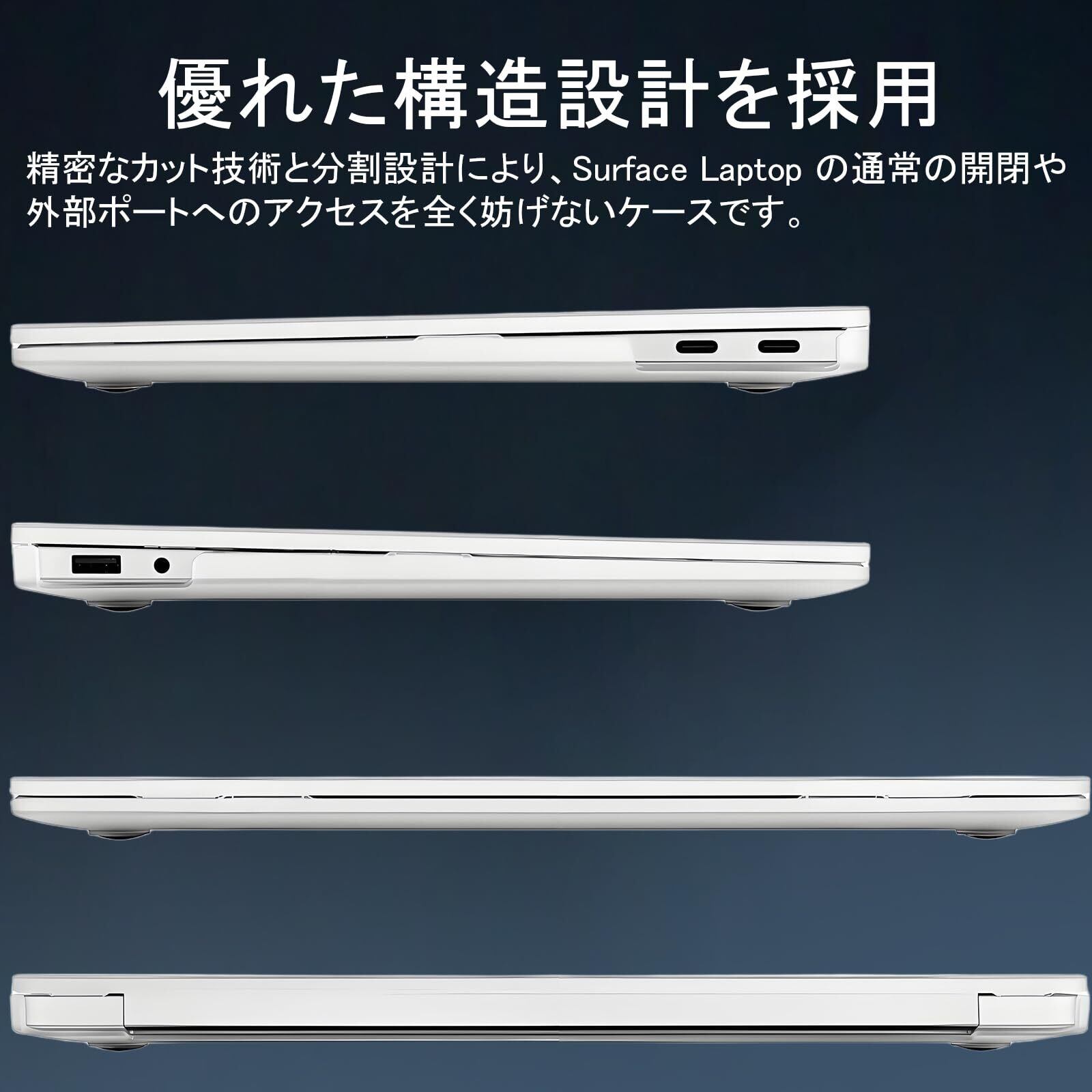 【 丈夫で高い耐久性】:Surface Laptop ケース 高強度のポリカーボネート(PC)素材を使用し、優れた衝撃吸収性と耐摩耗性を備えています。日常的な引っ掻き、指紋、衝撃、ほこりからしっかり守ります。特別な黄変防止コーティングにより、長期間透明さを保ち、耐久性も抜群。キレイを持続しながら、本体をしっかり保護できます。