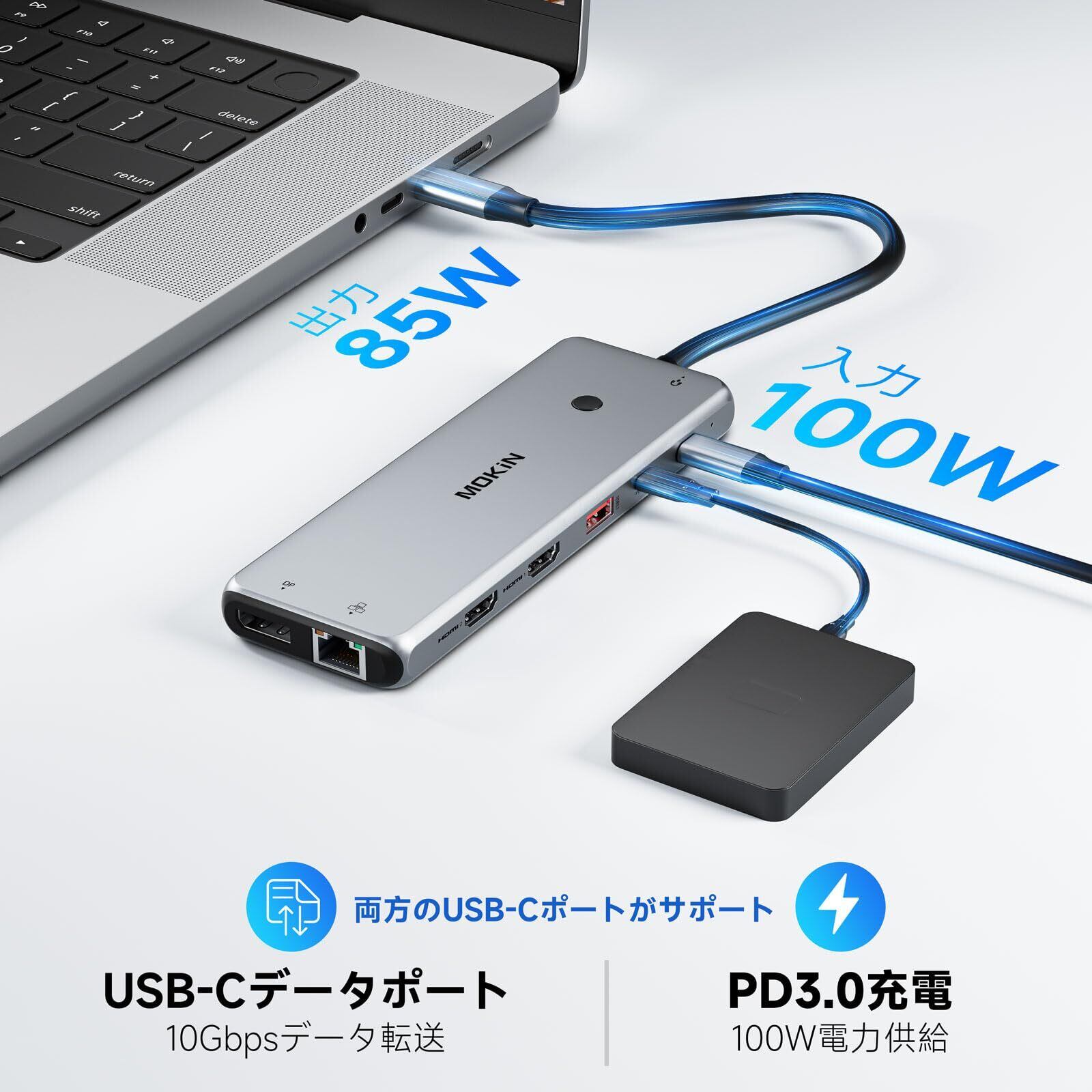 【人気商品】USB CドッキングステーションHDMI2つ【MOKIN 2*HDMI+DP三画面出力4K@60p MSTデュアル】type cドッキングステーション pc3台切り替え アルミ製 typec ハブ PD100W出力 2*USB C 10Gbps & 6*USBポートRJ45 3.5mmオ-ディオ/マイクMacBook Pro/Air Dell/HP/Lenovo/Linux対応