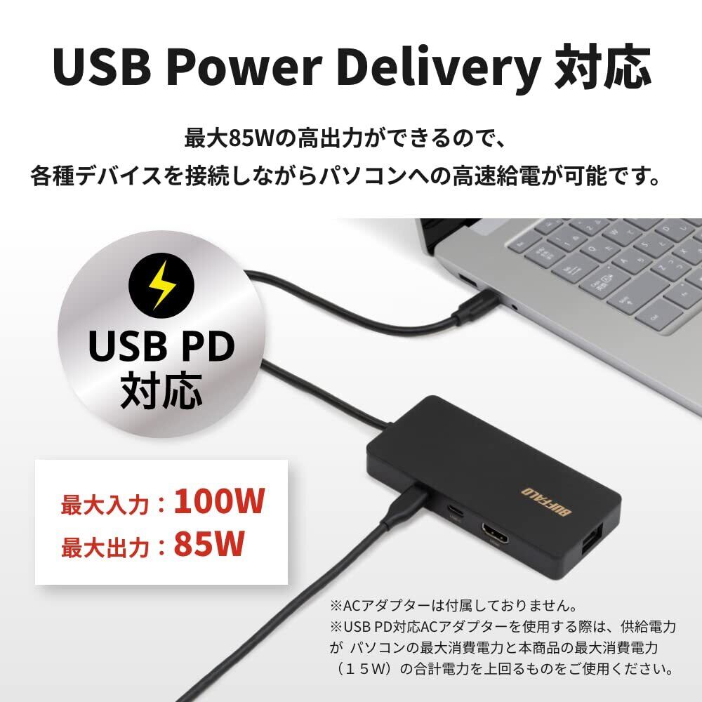 バッファロー USB-C ハブ ドッキングステーション 7-in-1 100W USB PD HDMI 4K LANポート Type-C Type-A USB 3.2 Gen1 高速データ転送 急速充電 microSD SDカードスロット 【 Windows/Mac/Chrome/iOS 】 ブラック LUD-U3-CGCBK/N
